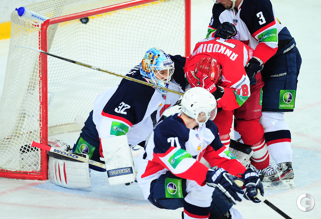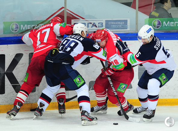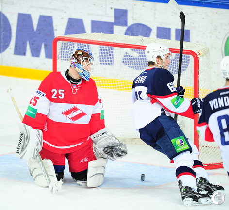 КХЛ. Регулярный чемпионат. "Спартак" (Москва) - "Слован" (Братислава) - 3:4 ОТ (0:0, 2:3, 1:0, 0:1). Трижды красно-белые догоняли гостей, но проиграли в овертайме. Фото - Антон Сергиенко, "СЭ"