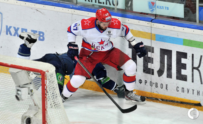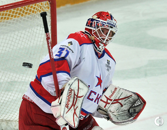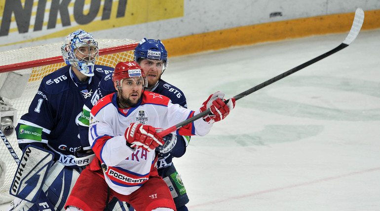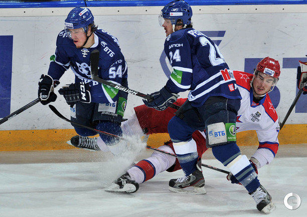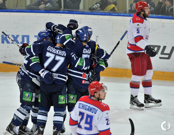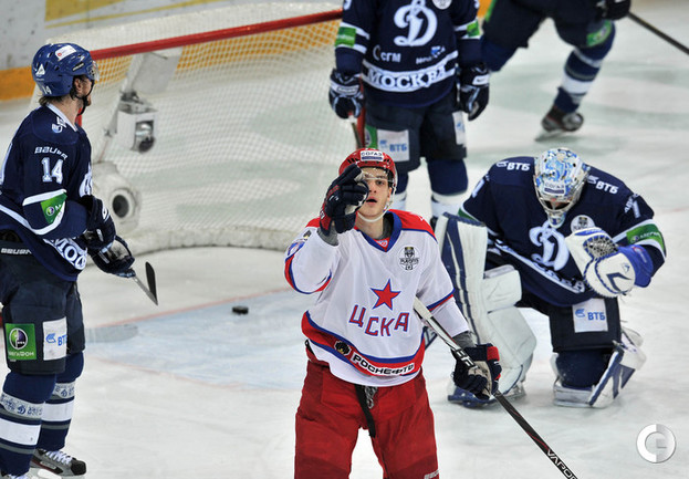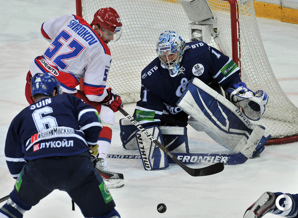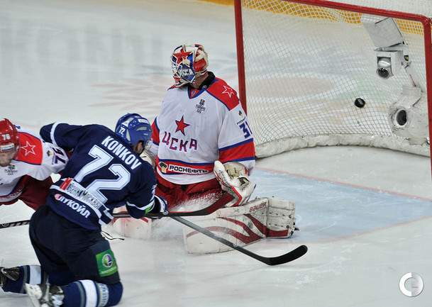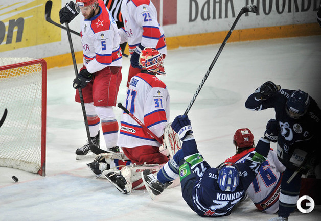 КХЛ. Плей-офф. 1/4 финала. Западная конференция. Четвертый матч. "Динамо" (Москва) - ЦСКА - 2:1 ОТ (1:0, 0:1, 0:0, 1:0). Голы: Соин - 1 (Граняк, Бабенко), 16:15 (1:0). Прохоркин - 3 (Кугрышев), 21:57 (1:1). Коньков - 3 (Бабенко), 60:38 (2:1). Вратари: Еременко - Стана. Счет в серии: 3-1 (3:0, 1:2, 3:2 ОТ). Фото - Алексей ИВАНОВ, "СЭ"