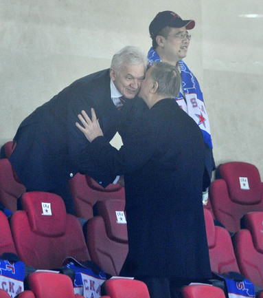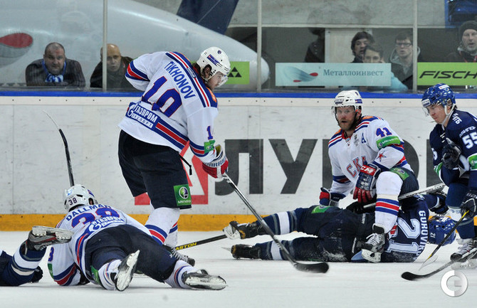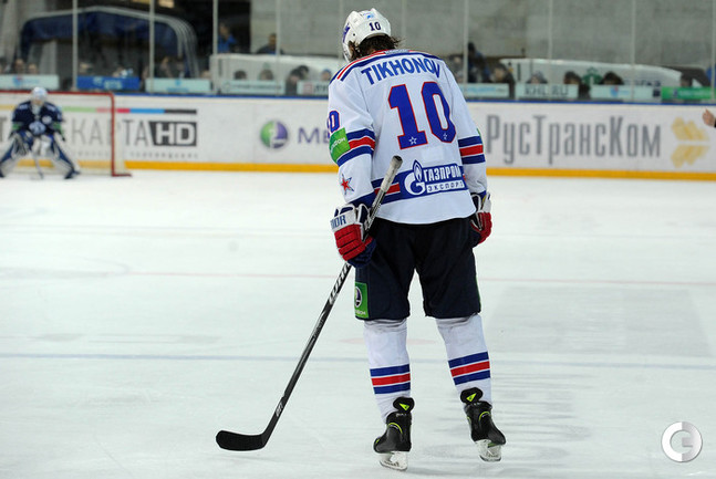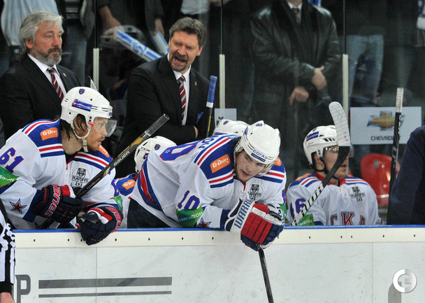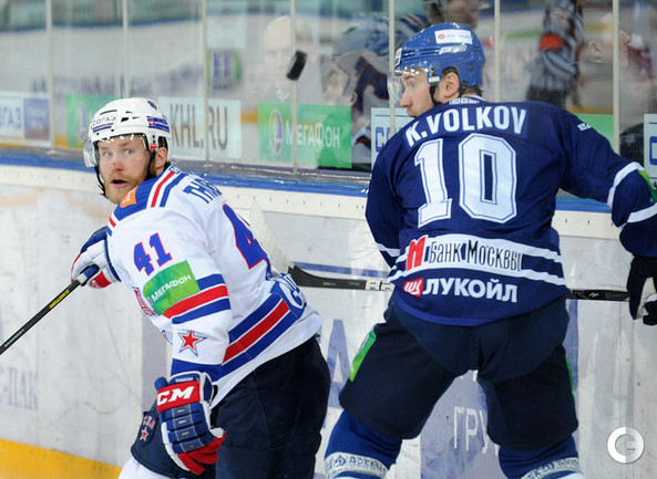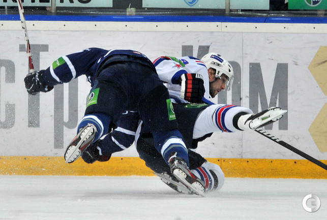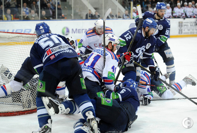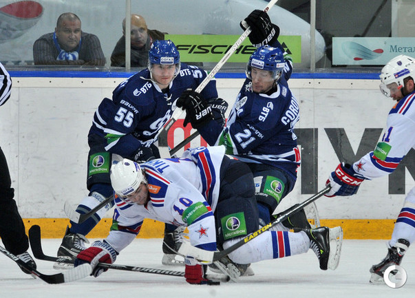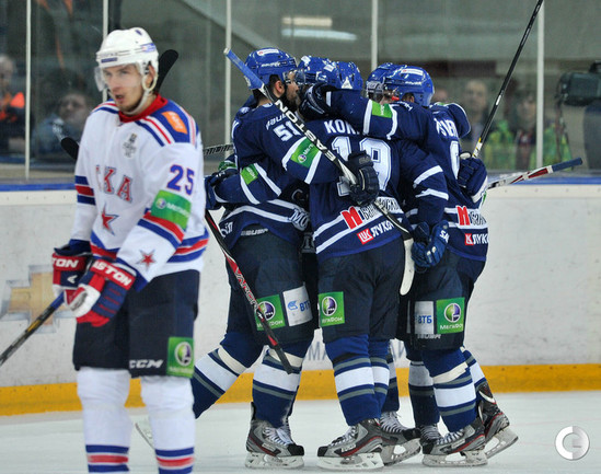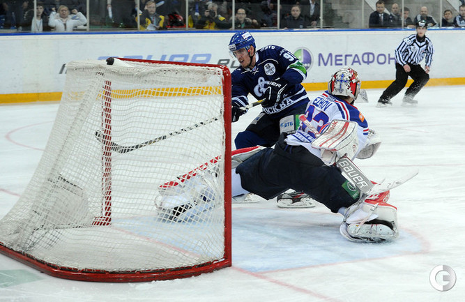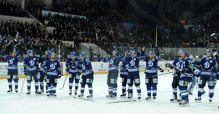 КХЛ. Плей-офф. 1/2 финала. Шестой матч. "Динамо" (Москва) – СКА (Санкт-Петербург) – 5:1 (0:0, 3:1, 2:0). В финале команда Олега Знарка сыграет с победителем "восточной" дуэли "Ак Барс" – "Трактор" (3-2). Если на прошлой домашней игре москвичей на лед бросали сосиски ("Динамо" уступило питерцам - 2:6), то на этот раз болельщики бросали в знак благодарности клубные бейсболки. Фото - Алексей Иванов, "СЭ"