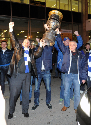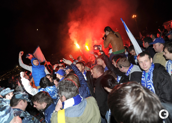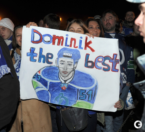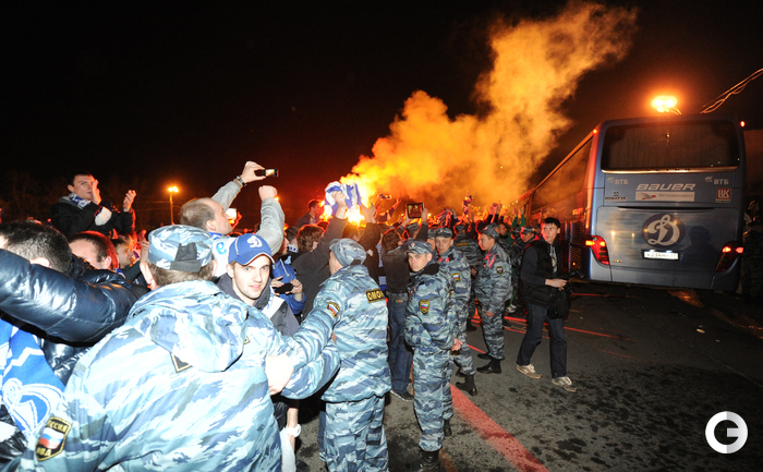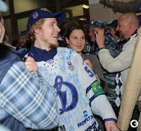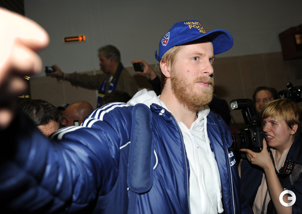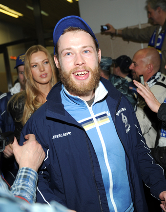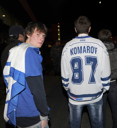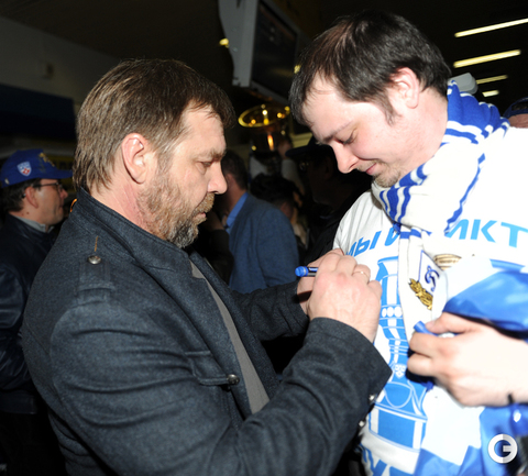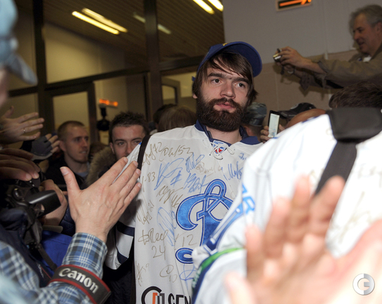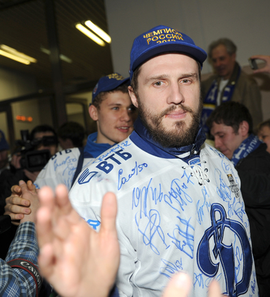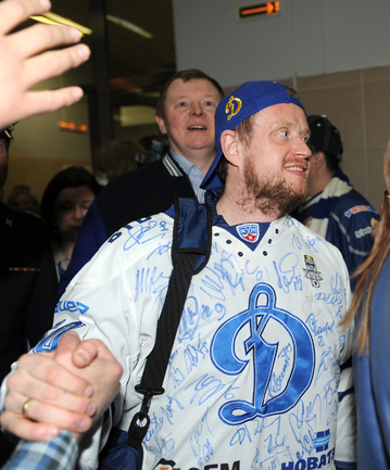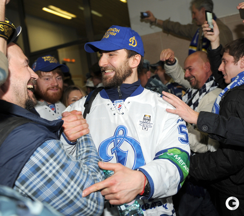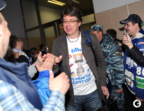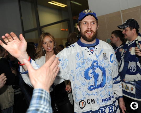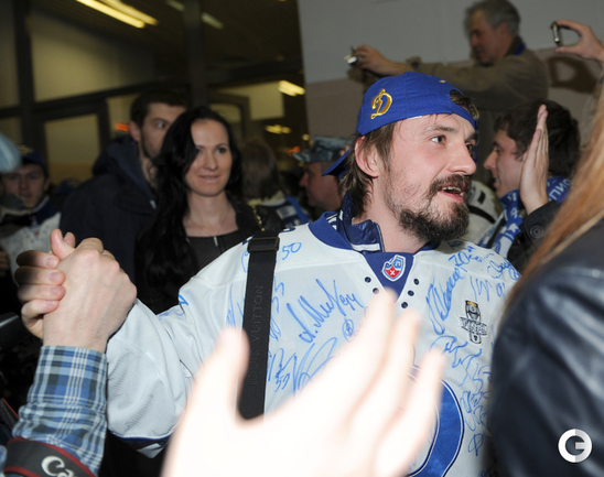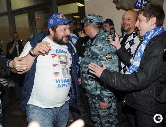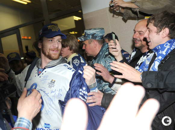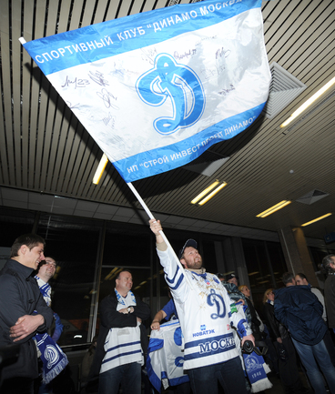 Сегодня. Шереметьево. Болельщики московского "Динамо" встретили обладателей Кубка Гагарина сезона 2012/13. Фото Татьяны ДОРОГУТИНОЙ, "СЭ"