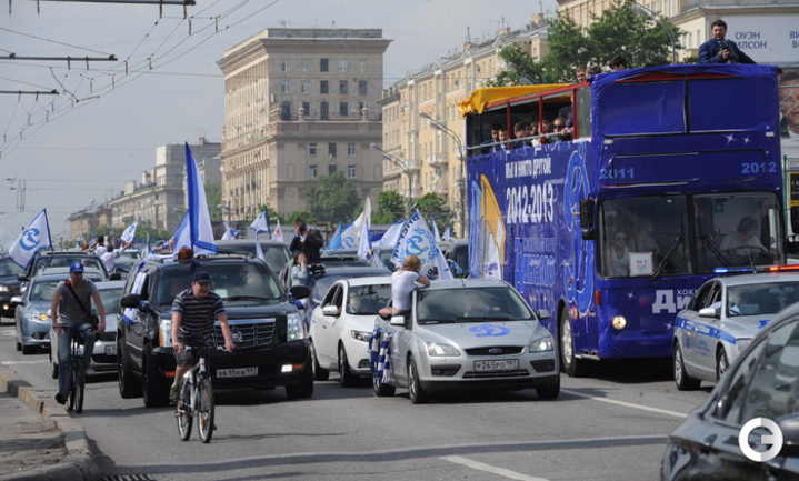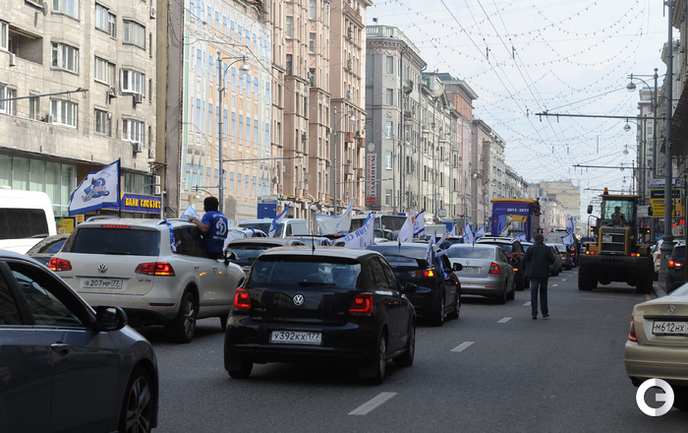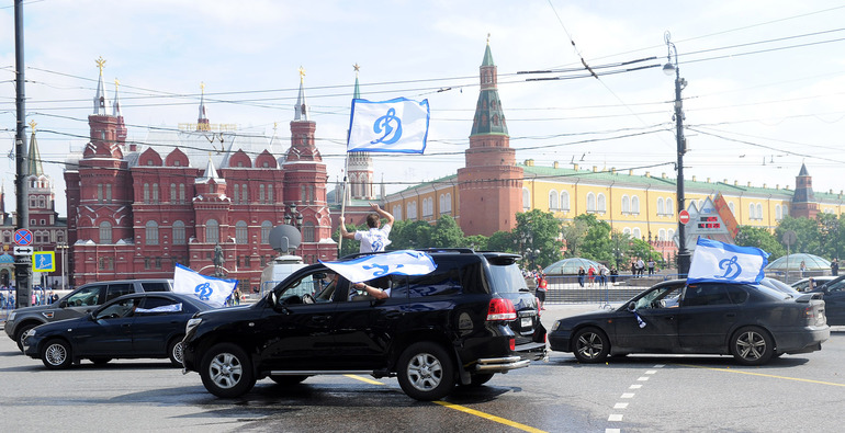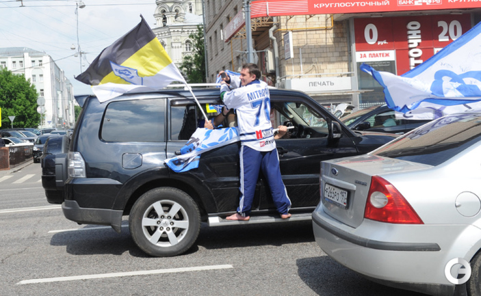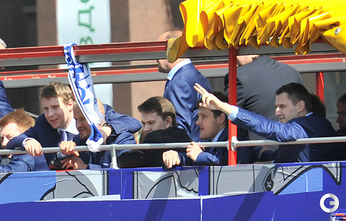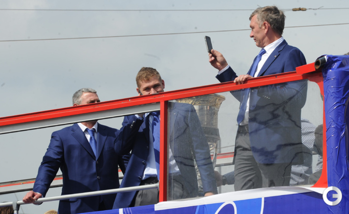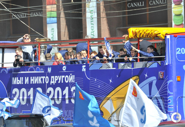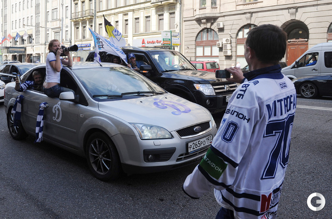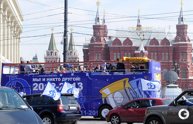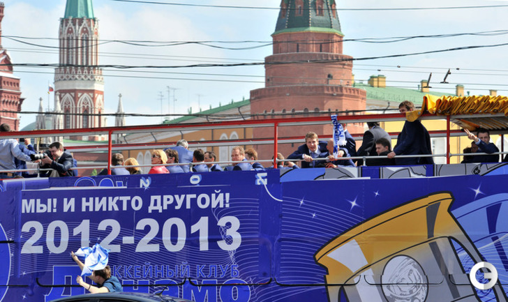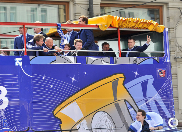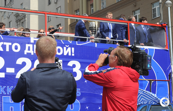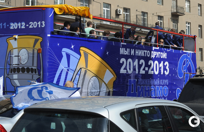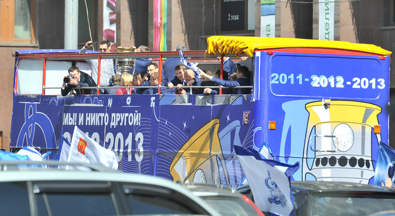 Обладатели Кубка Гагарина хоккеисты московского "Динамо" проехались в открытом автобусе по центральным улицам Москвы. Фото - Федор Успенский, "СЭ" и Алексей Иванов, "СЭ"
