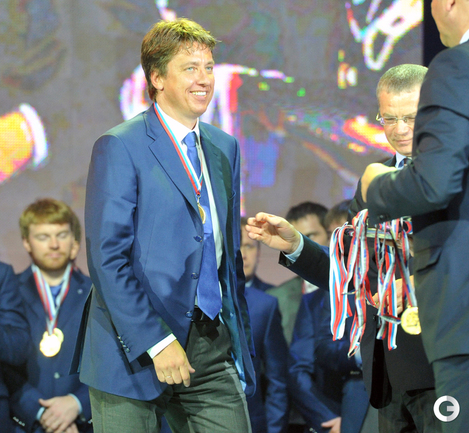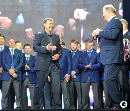 В "Лужниках" состоялось награждение хоккеистов московского "Динамо" золотыми медалями за победу в КХЛ. Фото - Татьяна Дорогутина, "СЭ"