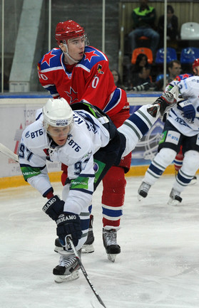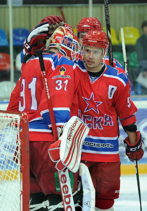 Хоккей. Москва. Кубок мэра. ЦСКА – "Динамо" (Москва) – 2:1 (1:0, 0:0, 1:1). Голы: Широков (Первышин), 17:28 – 1:0. Соловьев (бол., Карсумс, Яласваара), 51:22 – 1:1. Широков, 56:51 – 2:1. Вратари: Стана – Еременко (59:24). Фото - Никита УСПЕНСКИЙ, "СЭ"