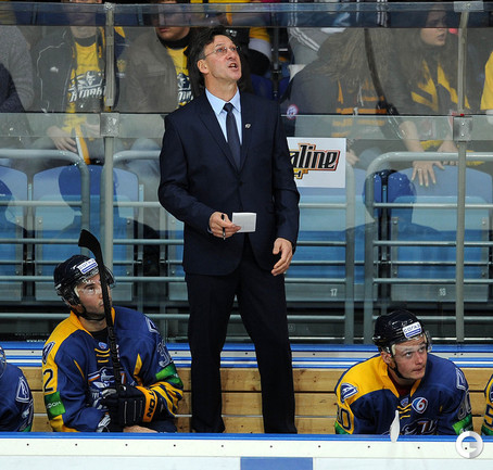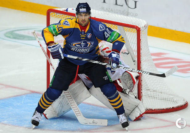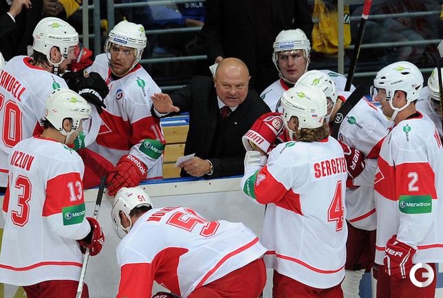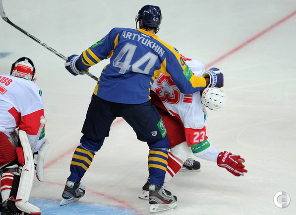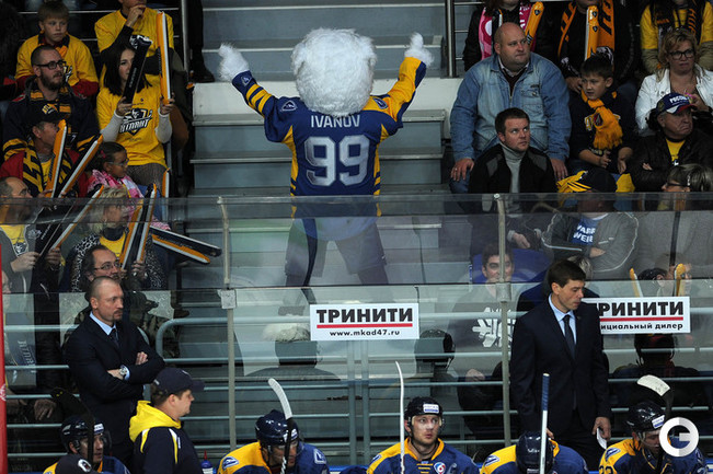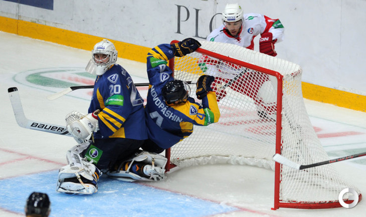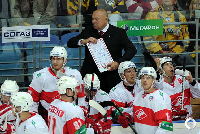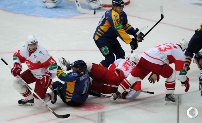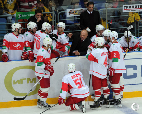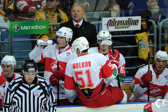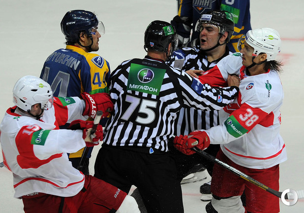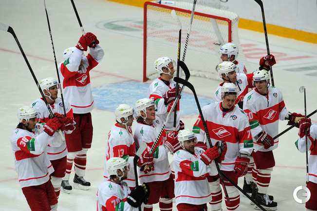 05.09.2013. Хоккей. В стартовом для "Атланта" и "Спартака" матче регулярного чемпионата-2013/14 в Мытищах верх взяли гости – 2:0. На 23-й минуте победную шайбу провел Растислав Шпирко, он же установил окончательный счет голом в пустые ворота. Фото - Алексей Иванов, "СЭ"