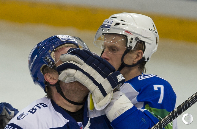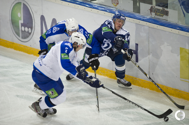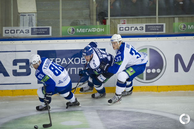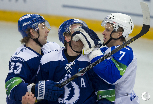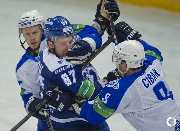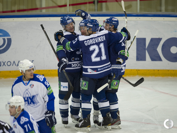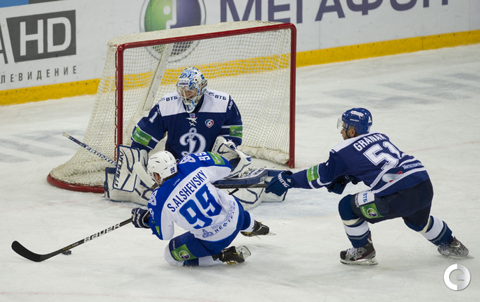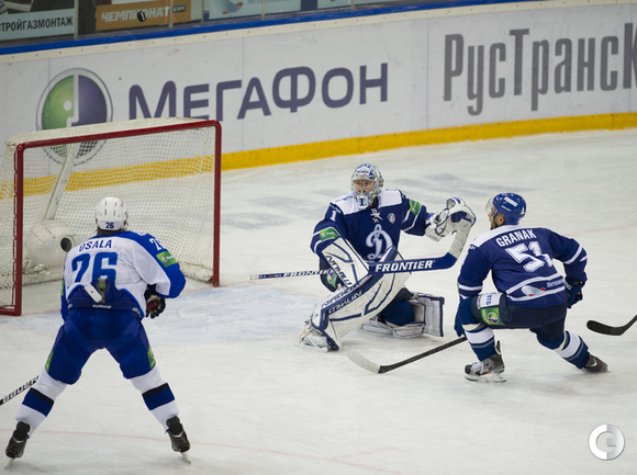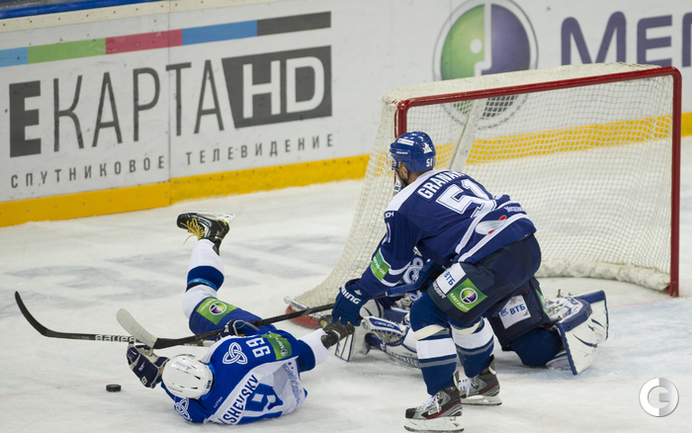 МСА "Лужники". Хоккей. КХЛ. "Динамо"(Москва) - "Нефтехимик" - 4:0. Голы: Комаров – 3 (бол., Горовиков, Новак), 23:34 – 1:0. Мосалев – 1 (Граняк), 30:28 – 2:0. Мосалев – 2 (Квапил), 45:15 – 3:0. Квапил – 1 (Пестушко, Цветков), 53:20 – 4:0. Фото - Антон Сергиенко, "СЭ"
