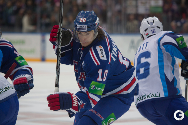 Хоккей. КХЛ. Регулярный чемпионат. СКА (Санкт-Петербург) – "Динамо" (Минск) – 5:1 (2:0, 2:1, 1:0). Голы: Кутейкин – 1 (Мортенссон), 3:35 – 1:0. Шипачев – 2 (Рясенский, Панарин), 18:17 – 2:0. Плэтт – 3 (Гаврус, Мич), 30:37 – 2:1. Скачков – 2 (Александров, Кетов), 34:09 – 3:1. Тихонов – 6 (Бурдасов), 34:53 – 4:1. Кетов – 1 (бол., Шипачев, Панарин), 58:07 – 5:1. Фото - Кристина КОРОВНИКОВА