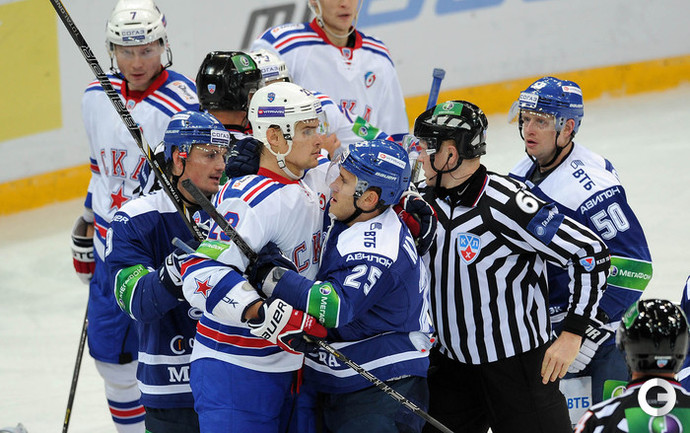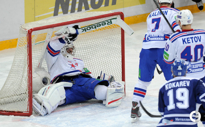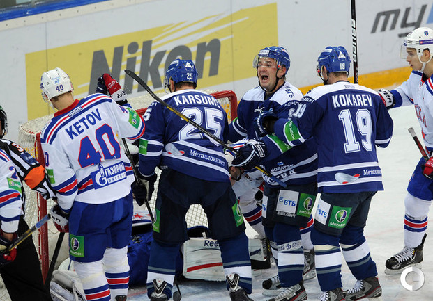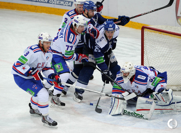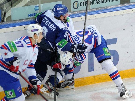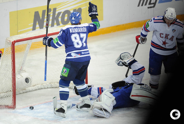 Москва. Хоккей. Регулярный чемпионат. КХЛ. "ДИНАМО" – СКА – 2:6 (1:2, 1:0, 0:4). Голы: Скачков (Чудинов, Малышев), 2:58 – 0:1. Чудинов (Панарин, Александров), 9:32 – 0:2. Комаров (Яласваара, Горовиков), 16:06 – 1:2. Комаров (Миронов, Пестушко), 35:17 – 2:2. Панарин, 41:03 (Кучерявенко), 41:03 – 2:3. Панарин (Тихонов), 44:19 – 2:4. Малышев (Червенка, Юдин), 49:22 – 2:5. Торесен (Панарин), 59:59 – 2:6. Фото - Алексей ИВАНОВ, "СЭ"