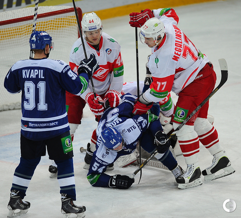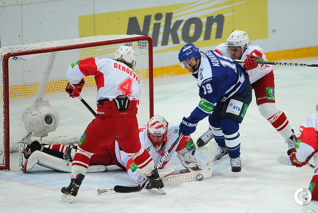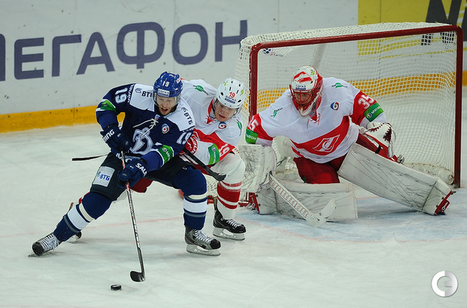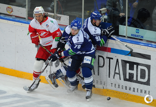 Хоккей. КХЛ. Регулярный чемпионат. "Динамо" (Москва) – "Спартак" (Москва) – 2:1. Голы: Бабенко – 2 (бол., Карпов), 7:42 – 1:0. Бобров – 1 (Шпирко, Жердев), 37:22 – 1:1. Глазачев – 1 (Соловьев, Лазушин), 48:01 – 2:1. В московском дерби "Динамо" взяло верх над "Спартаком" со счетом 2:1. Для красно-белых это поражение стало третьим подряд. Фото - Антон СЕРГИЕНКО, "СЭ"