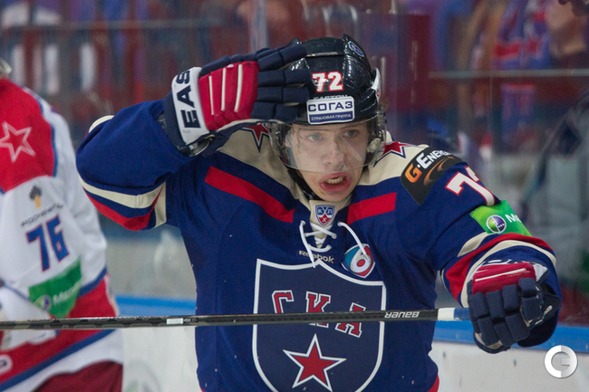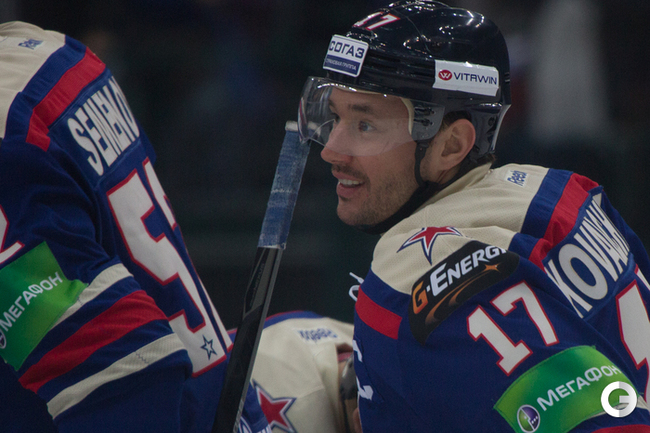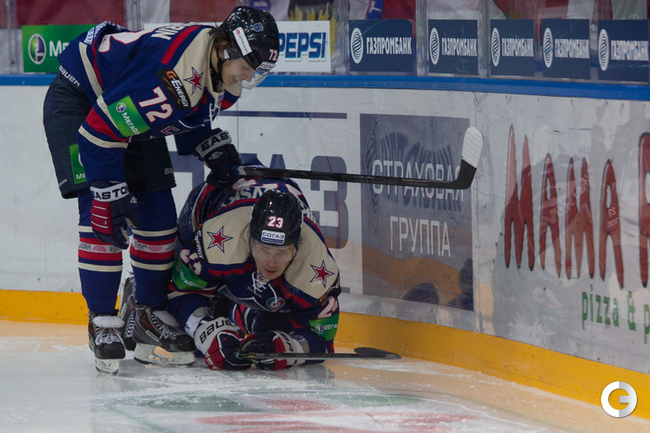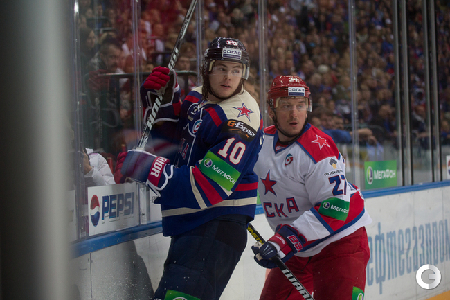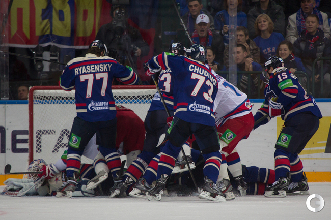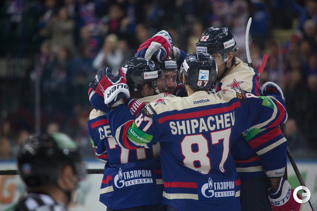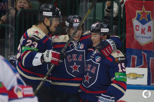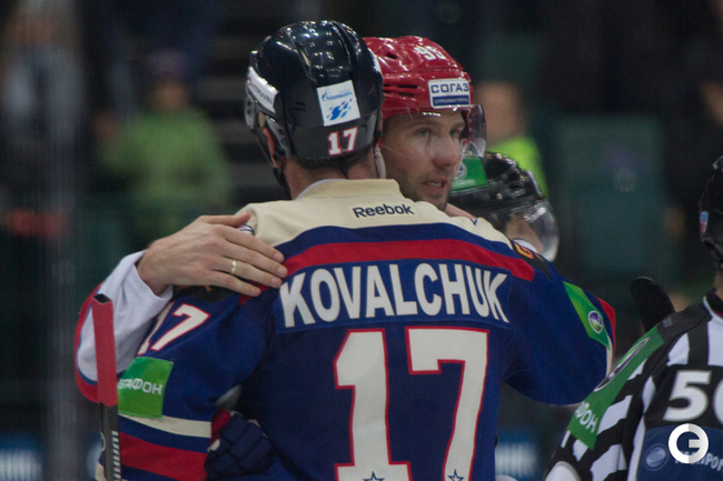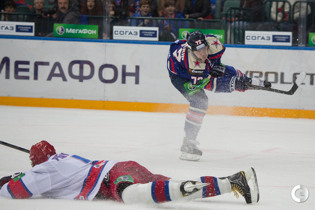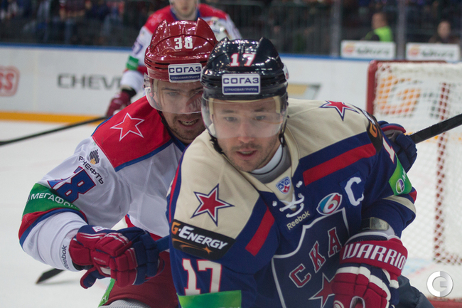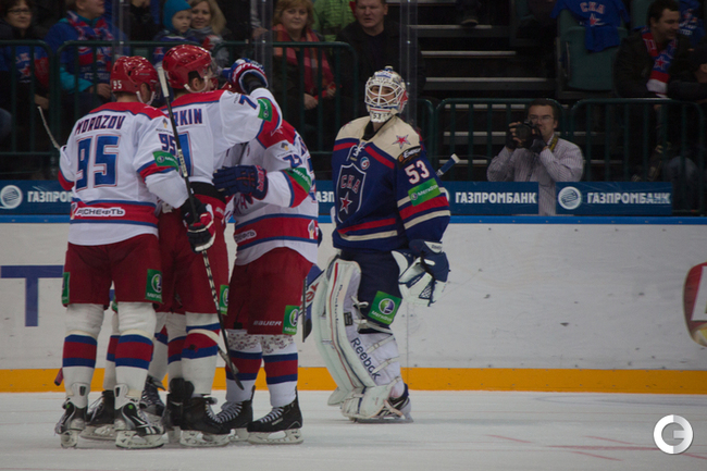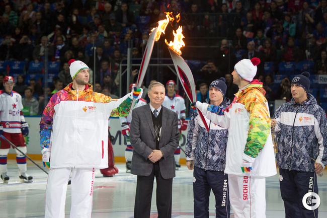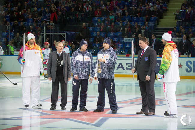 КХЛ. Регулярный чемпионат. СКА – ЦСКА – 5:2 (2:0, 3:1, 0:1). СКА в домашнем матче регулярного чемпионата КХЛ победил ЦСКА – 5:2. Перед игрой, как уже сообщал "СЭ", в "Ледовом" прошла эстафета олимпийского огня Сочи-2014. В ней приняли участие капитаны команд Илья Ковальчук и Алексей Морозов и прославленный тренер Виктор Тихонов. Любопытно, что счет в матче открыл Ковальчук, второй гол на свой счет записал Виктор Тихонов-младший, а Морозов провел последнюю шайбу вечера и следом заработал удаление. Фото - Кристина КОРОВНИКОВА, "СЭ"