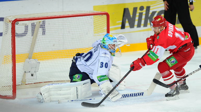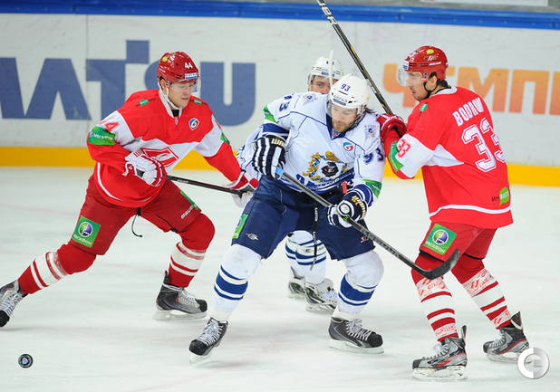 Хоккей. КХЛ. Регулярный чемпионат. "Спартак" (Москва) – "Амур" (Хабаровск) – 1:0 (0:0, 0:0, 1:0). Гол: Бобров – 2 (Васильев, Волков), 46:02 – 1:0. Фото - Антон СЕРГИЕНКО, "СЭ"