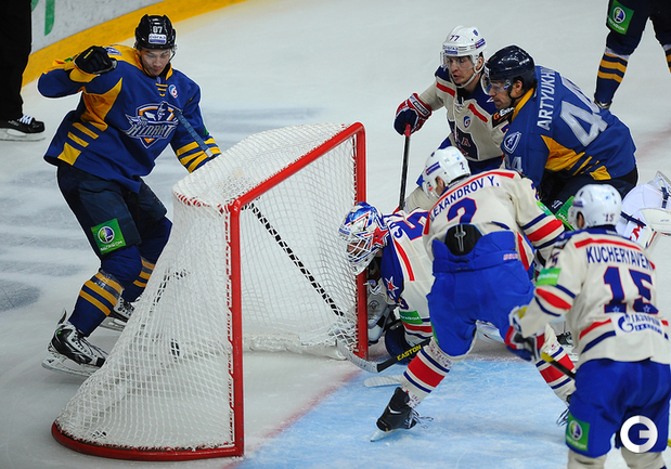 16 ноября 2013 года. Россия. Мытищи. Хоккей. КХЛ. "Атлант" (Московская область) – СКА (Санкт-Петербург) – 1:2 (0:1, 1:0, 0:1) Голы: Кучерявенко - 4 (мен.), 14:49 - 0:1. Кадейкин - 5 (Шмелев, Артюхин), 32:49 - 1:1. Тихонов - 14 (Ковальчук, Калинин), 41:14 - 1:2. Фото- Антон СЕРГИЕНКО, "СЭ"