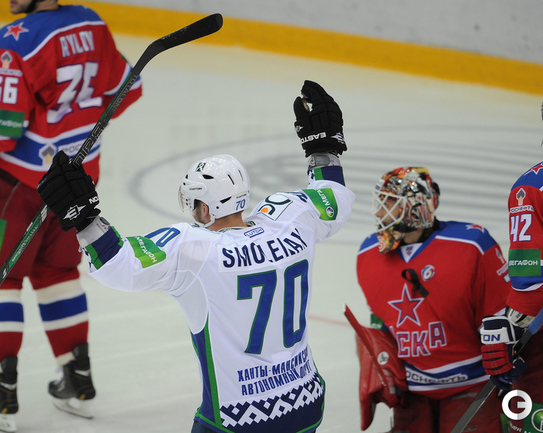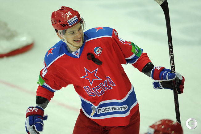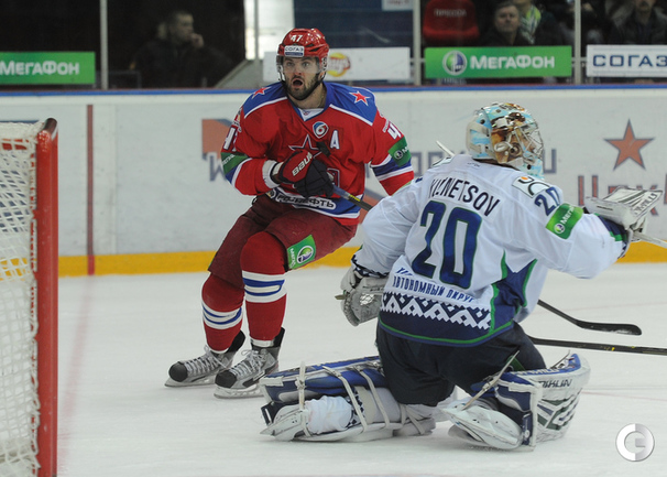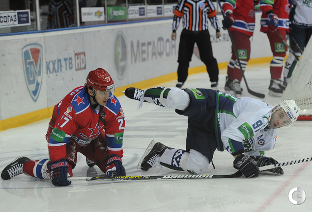 Хоккей. КХЛ. Регулярный чемпионат. ЦСКА – "Югра" (Ханты-Мансийск) – 3:4 ОТ (3:2, 0:0, 0:1, 0:1). Голы: Фролов – 4 (бол., Радулов, Рылов), 3:36 – 1:0. Трончински – 4 (бол., Диксон, Смоленяк), 4:58 – 1:1. Григоренко – 6 (Прохоркин, Радулов), 9:04 – 2:1. Булянский – 2, 13:55 – 2:2. Морозов – 5 (бол., Радулов, Зайцев), 17:24 – 3:2. Смоленяк – 2 (Диксон), 41:05 – 3:3. Трончински – 5, 63:00 – 3:4. Фото - Федор Успенский, "СЭ"