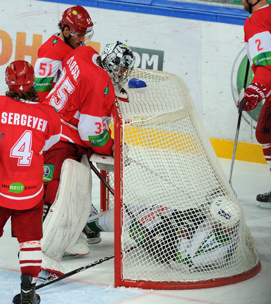 Хоккей. КХЛ. Регулярный чемпионат. "Спартак" (Москва) – "Салават Юлаев" (Уфа) – 2:3 (0:0, 0:0, 2:3). Голы: Куинт – 9 (бол., Бодров, Козлов), 44:32 – 1:0. Кольцов – 7 (Кайгородов, Пильстрем), 46:53 – 1:1. Хартикайнен – 10 (Макаров, Заборски), 47:51 – 1:2. Шпирко – 8 (бол., Куинт), 53:08 – 2:2. Мирнов – 8 (Зубарев), 58:46 – 2:3. Фото - Алексей ИВАНОВ, "СЭ"