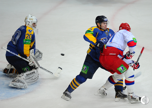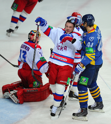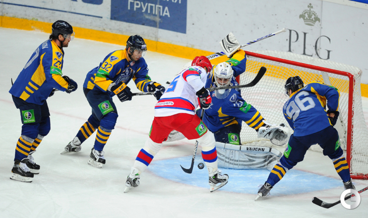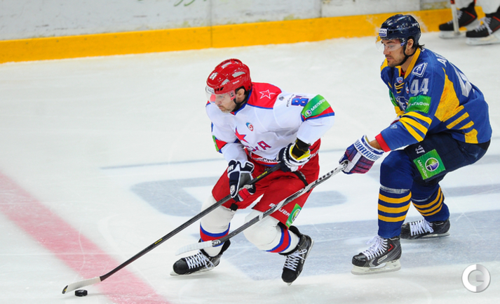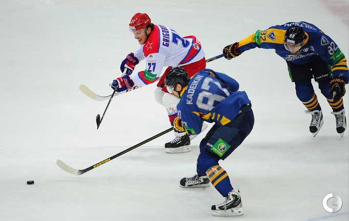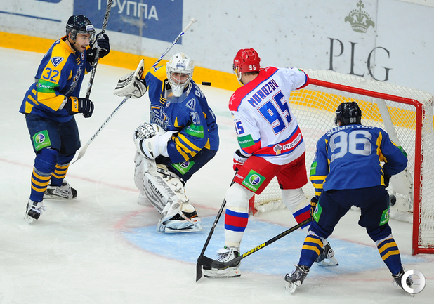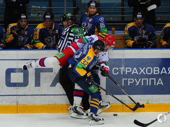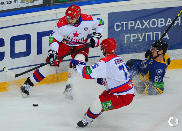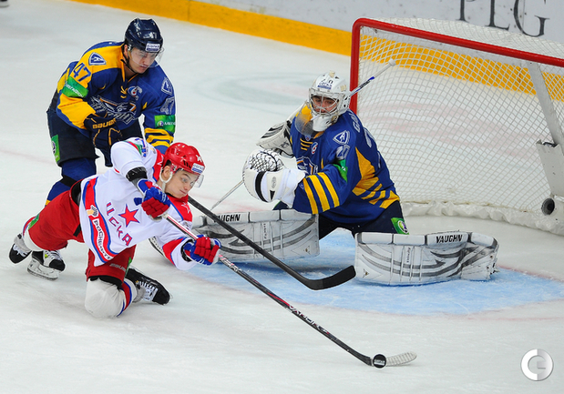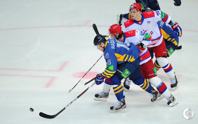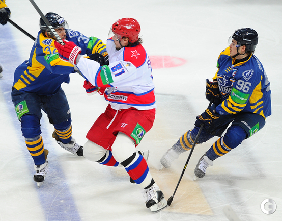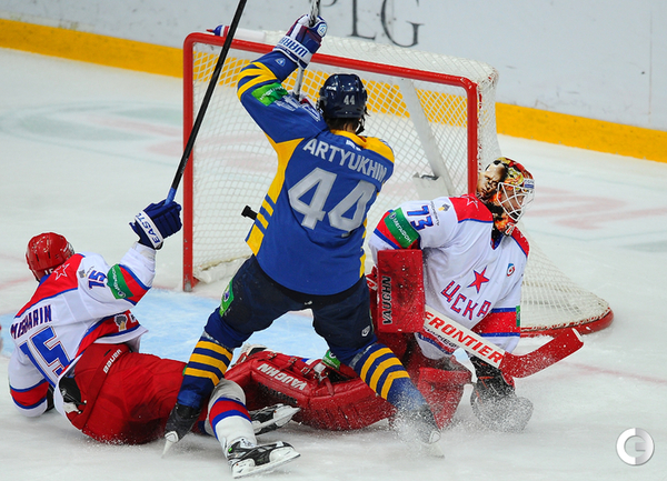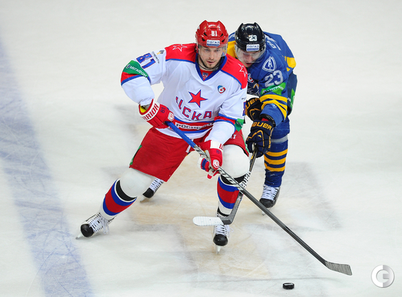 КХЛ. Регулярный чемпионат. "Атлант" (Московская область) – ЦСКА – 2:0 (0:0, 0:0, 2:0). "Атлант" в матче регулярного чемпионата КХЛ на своем льду выиграл у ЦСКА – 2:0. Подмосковная команда забросила обе шайбы в концовке встречи: сначала отличился Игорь Радулов, а затем пустые ворота поразил Константин Кольцов. Для армейцев это поражение стало вторым подряд. Фото - Антон Сергиенко, "СЭ"