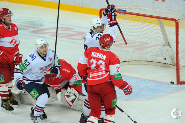 Хоккей. КХЛ. Регулярный чемпионат. "Спартак" (Москва) - "Металлург" (Магнитогорск) - 1:6 (0:0, 0:4, 1:2). Голы: Ли - 11 (Мозякин, Коварж), 26:20 - 0:1. Паре - 1 (Казионов, Осала), 28:00 - 0:2. Зарипов - 22 (бол., Брент, Коварж), 29:42 - 0:3. Тимкин - 6 (бол., Брент, Ли), 30:32 - 0:4. Пешехонов - 1 (Сергеев), 50:14 - 1:4. Паре - 2, 50:58 - 1:5. Антипин - 5 (Косов), 51:13 - 1:6. Фото - Алексей ИВАНОВ, "СЭ"