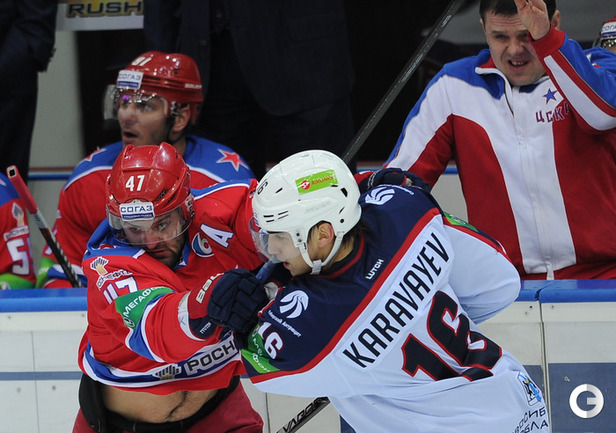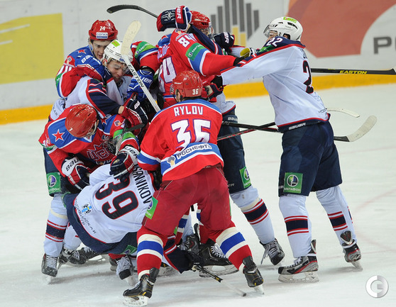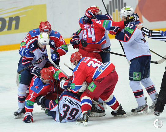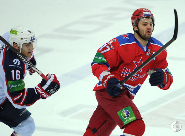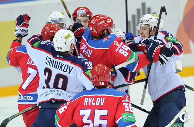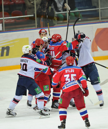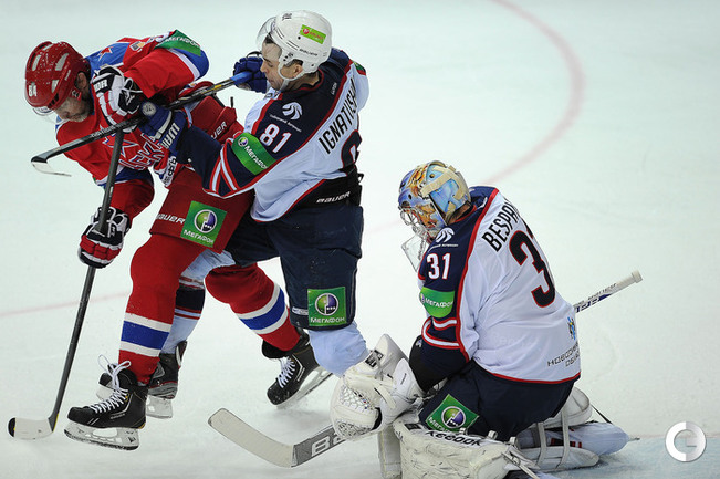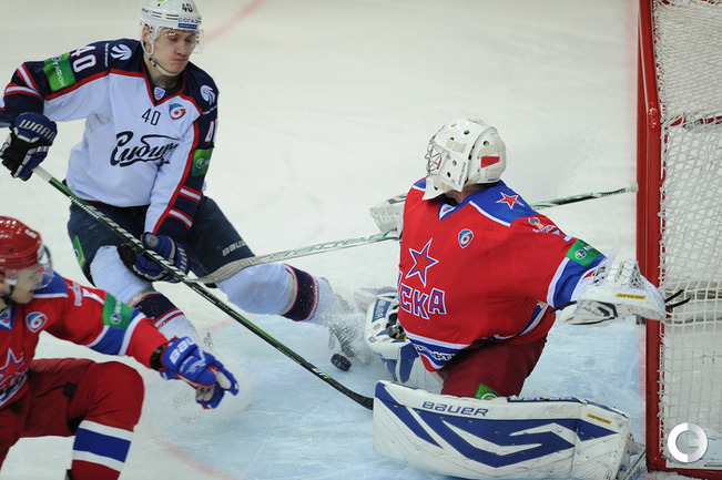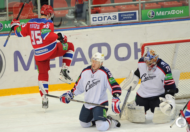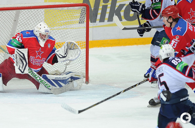Хоккей. КХЛ. Регулярный чемпионат. ЦСКА – "Сибирь" (Новосибирск) – 3:2 (1:0, 0:1, 1:1, 0:0, 1:0). Голы: Прохоркин - 17 (Радулов), 11:33 - 1:0. Кугрышев - 14 (Копейкин), 24:01 - 1:1. Моня - 7 (Лекомцев), 41:59 - 1:2. Морозов - 12 (бол., Филппула), 55:58 - 2:2. Победный буллит: Радулов. Для армейцев эта победа стала второй подряд. Вратарь Михаил Бирюков дебютировал за московский клуб. Фото - Федор УСПЕНСКИЙ, "СЭ"