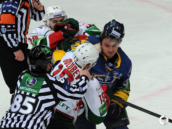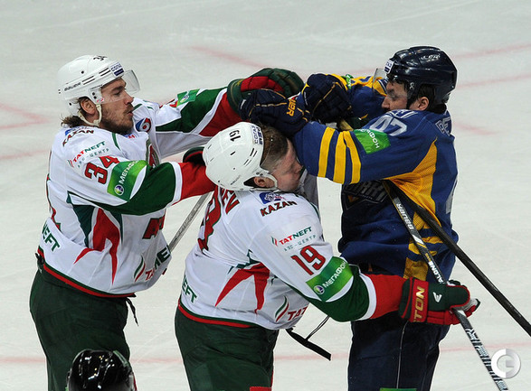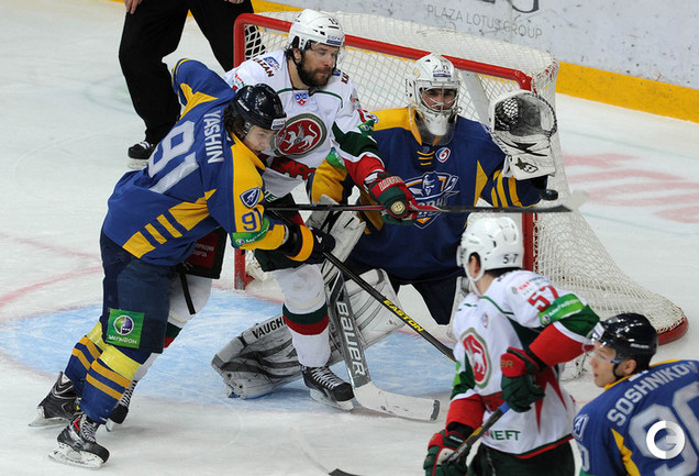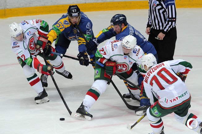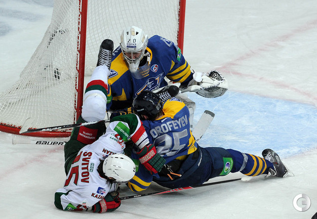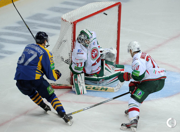КХЛ. Регулярный чемпионат. "Атлант" (Московская область) – "Ак Барс" (Казань) – 1:2 ОТ. Голы: Рукавишников – 3 (Майоров, Кадейкин), 23:19 – 1:0. Стэплтон – 14 (бол., Хешка, Варнаков), 42:48 – 1:1. Никулин – 4 (Варнаков, Бурмистров), 63:28 – 1:2. Фото - Алексей ИВАНОВ, "СЭ"