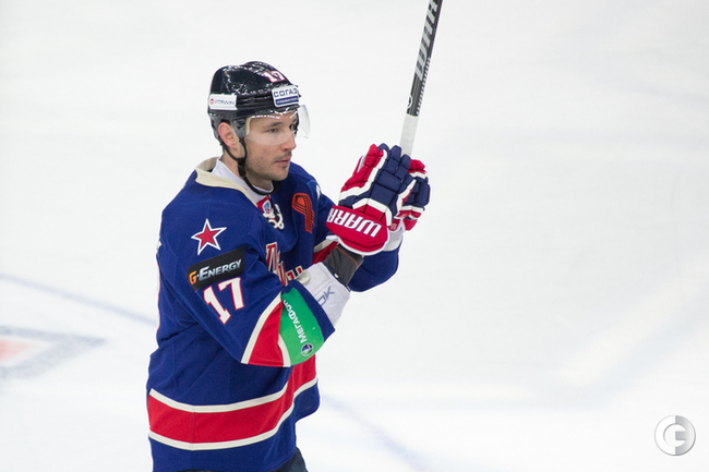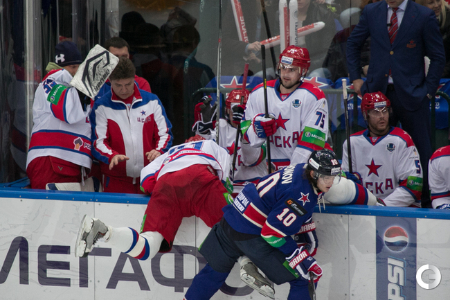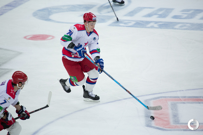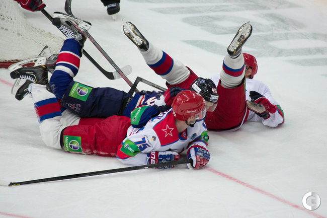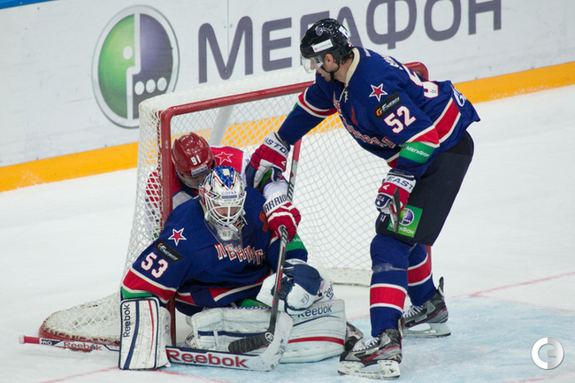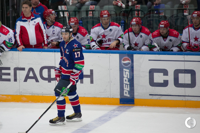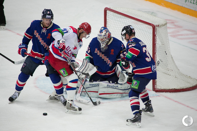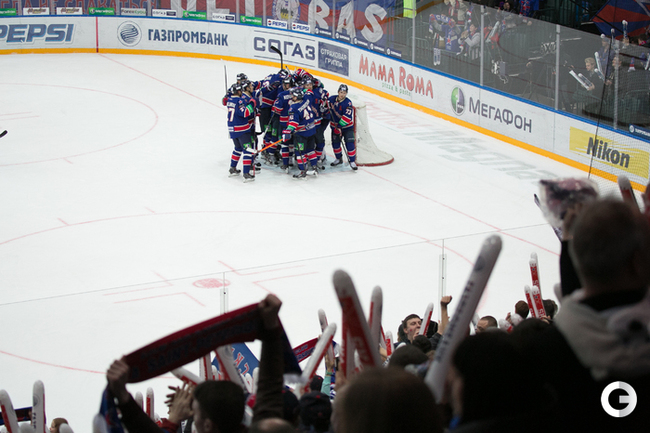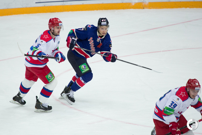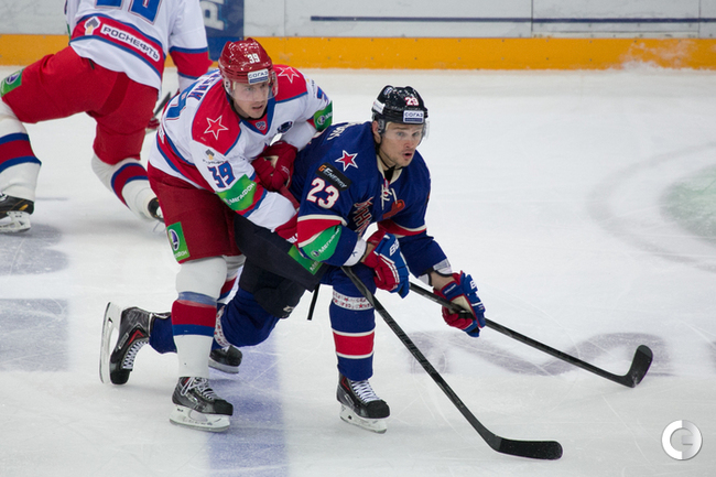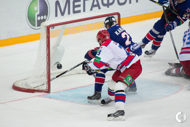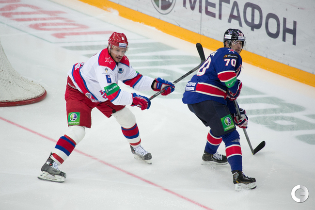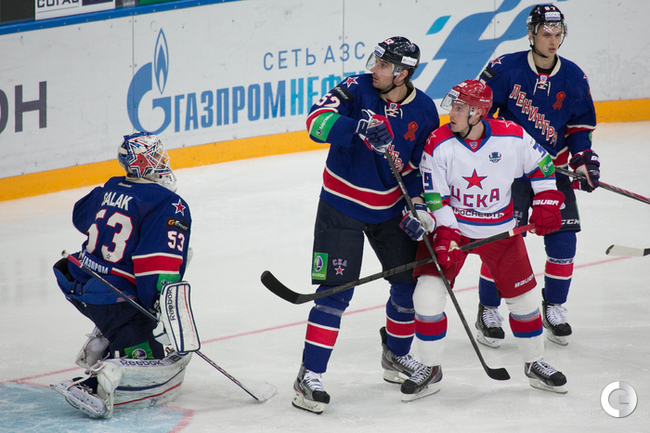 СКА на своей площадке в первом матче 1/8 финала Кубка Гагарина с минимальным счетом победил ЦСКА. Победная шайба на счету Андрея Сигарева. Фото - Кристина Коровникова, "СЭ"