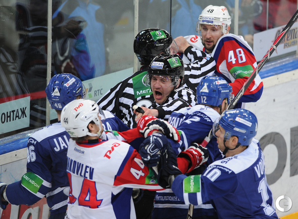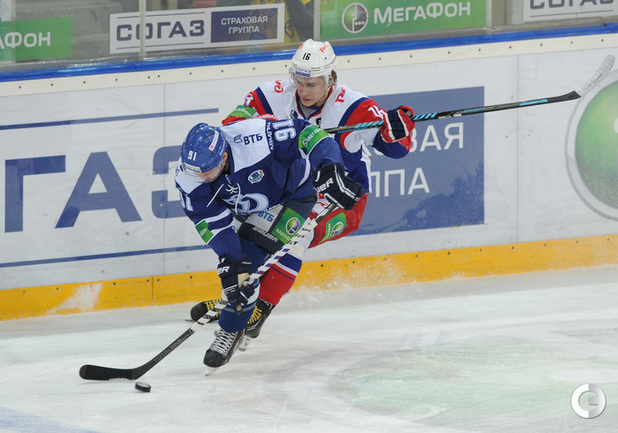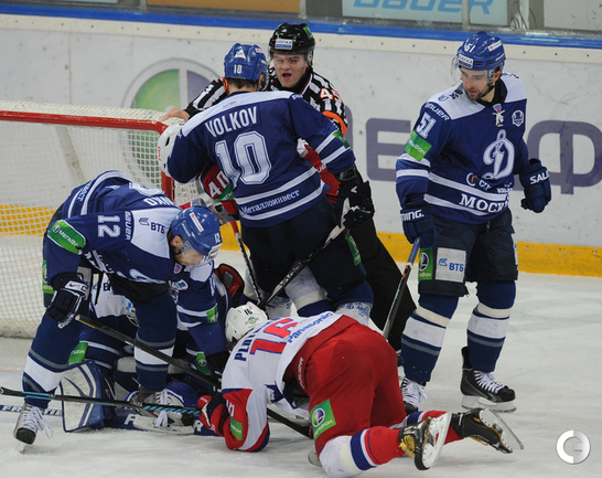 КХЛ. Плей-офф. 1/8 финала. Пятый матч. "Динамо" (Москва) – "Локомотив" – 1:0 2ОТ (0:0, 0:0, 0:0, 0:0, 2:0). Счет в серии: 3-2 (3:2 ОТ, 2:1, 1:2, 2:3 2ОТ). Фото - Федор УСПЕНСКИЙ, "СЭ"