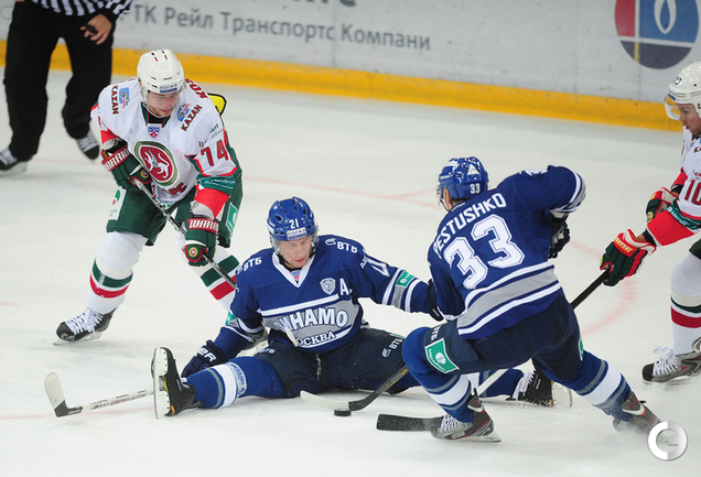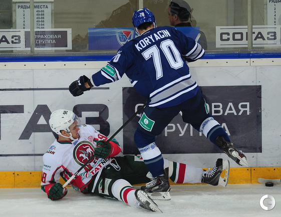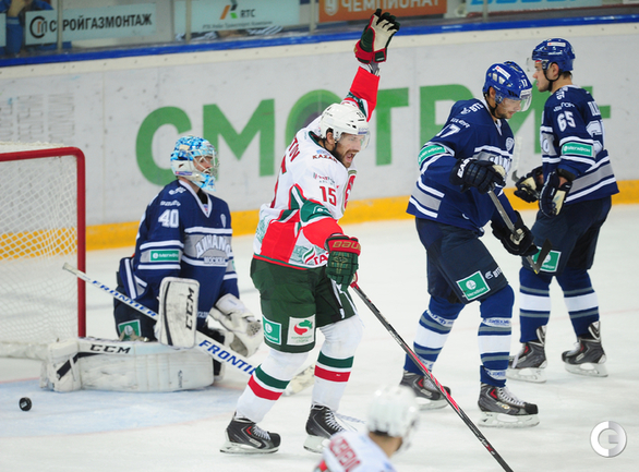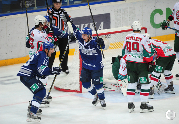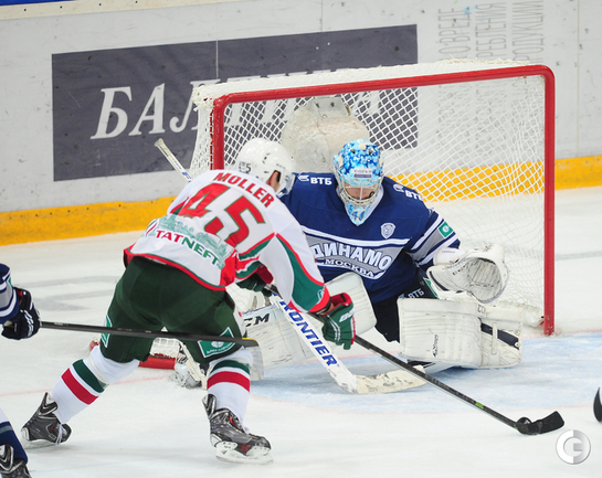 КХЛ. Регулярный чемпионат. "Динамо" (Москва) – "Ак Барс" (Казань) – 3:2 (1:1, 2:1, 0:0). Голы: Вишневский – 1 (бол., Новак, Бабенко), 10:57 – 1:0. Меллер – 2 (бол., Азеведо), 16:46 – 1:1. Горовиков – 1 (Пестушко, Даугавиньш), 20:17 – 2:1. Малыхин – 1 (Костицын), 27:32 – 2:2. Мосалев – 1 (Жердев), 28:36 – 3:2. Фото - Антон СЕРГИЕНКО, "СЭ"