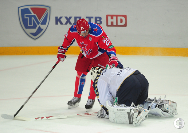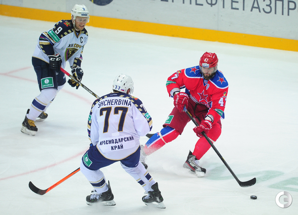 9 октября 2014 года. Москва. КХЛ. Регулярный чемпионат.ЦСКА – "Сочи" – 6:2 (2:0, 2:0, 2:2). Голы: Да Коста – 13 (бол., Зайцев, Денисов), 9:32 – 1:0. Жарков – 3 (Мишарин, Бондарев), 9:45 – 2:0. Григоренко – 4 (Да Коста, Радулов), 36:57 – 3:0. Андронов – 1 (Артюхин, Муршак), 37:58 – 4:0. Эммертон – 2, 43:41 – 4:1. Андронов – 2 (бол., Муршак), 49:23 – 5:1. Да Коста – 14 (бол., Киселевич, Радулов), 52:06 – 6:1. Эммертон – 3 (бол., Людучин), 58:33 – 6:2.