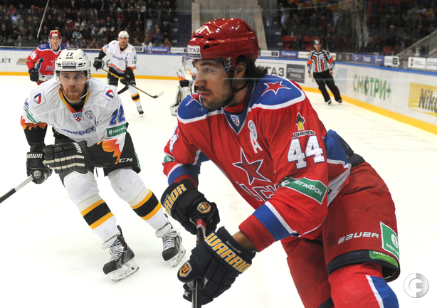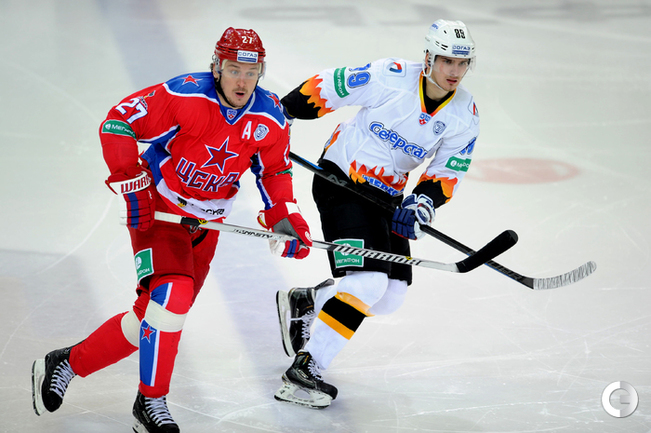 КХЛ. Регулярный чемпионат. ЦСКА – "Северсталь" (Череповец) – 8:2 (2:1, 5:1, 1:0). ЦСКА в домашнем матче регулярного чемпионата КХЛ разгромил "Северсталь" со счетом 8:2. Для армейцев это победа стала шестой подряд. Капитан красно-синих Александр Радулов, который пропускал предыдущую встречу из-за дисквалификации, набрал 6 (1+5) очков. Нападающий Игорь Григоренко забросил 4 шайбы.Федор Успенский, "СЭ"