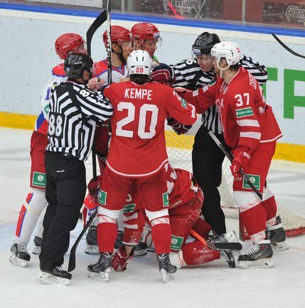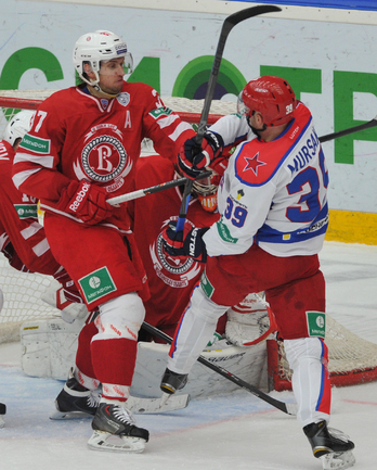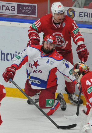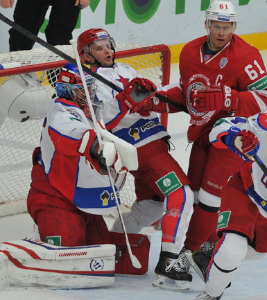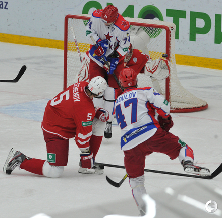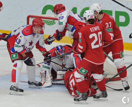 КХЛ. Регулярный чемпионат. "Витязь" (Подольск) – ЦСКА – 1:4 (0:1, 0:2, 1:1). В матче регулярного чемпионата КХЛ ЦСКА в Подольске выиграл у "Витязя" – 4:1. Самым результативным игроком встречи стал капитан армейцев Александр Радулов, набравший 3 (1+2) очка. Для московского клуба эта победа стала 13-й подряд. В последний раз подопечные Дмитрия Квартальнова проигрывали 30 октября "Торпедо" (0:3). ЦСКА в турнирной таблице имеет на своем счету 89 очков. Фото - Татьяна Дорогутина, "СЭ"