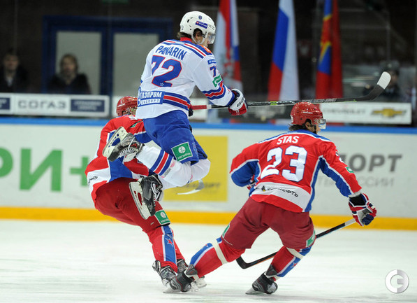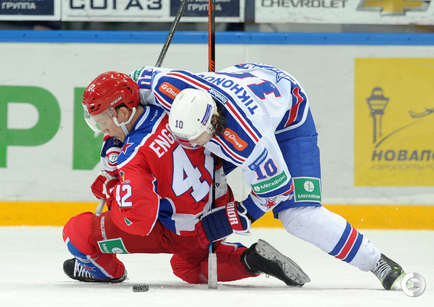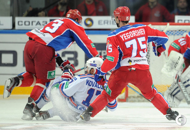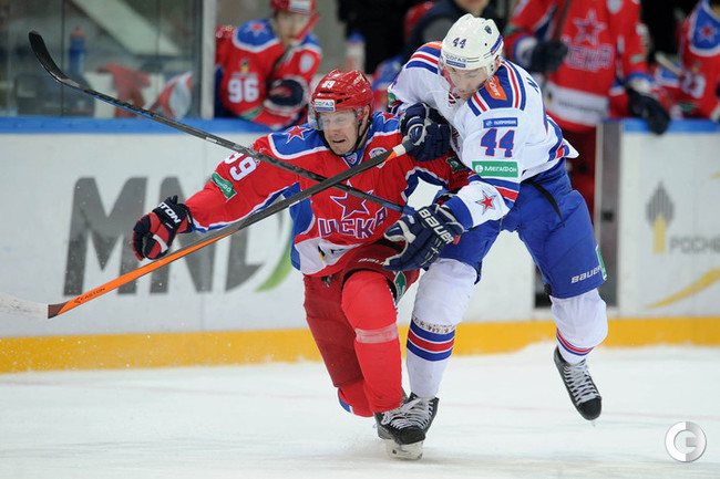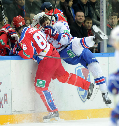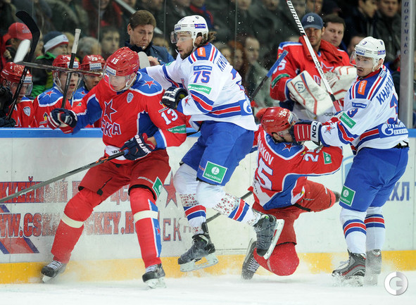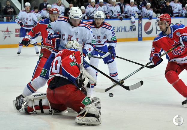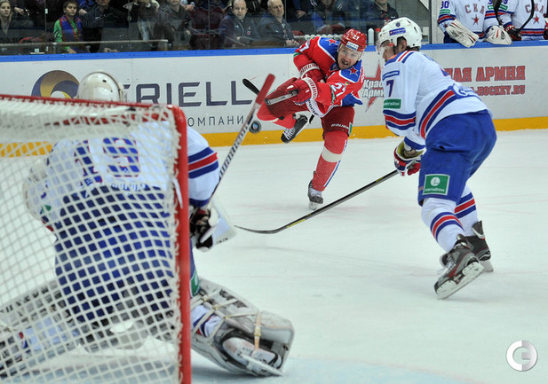 КХЛ. Регулярный чемпионат. ЦСКА – СКА (Санкт-Петербург) – 1:3 (1:1, 0:1, 0:1). Голы: Бурдасов – 8 (Мортенссон), 2:11 – 0:1. Андронов – 5 (Макаров, Муршак), 16:17 – 1:1. Ковальчук – 23 (Тихонов), 36:39 – 1:2. Кетов – 4 (Чудинов, Белов), 41:43 – 1:3. ЦСКА сохраняет лидерство в Западной конференции, имея в своем активе 111 очков. СКА занимает второе место, набрав 108 очков. Фото - Алексей Иванов, "СЭ"