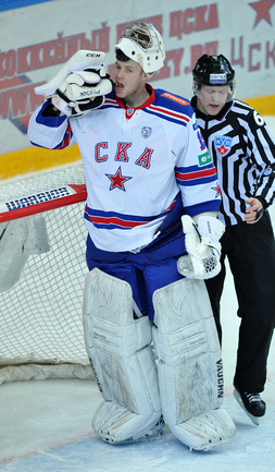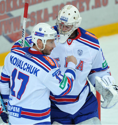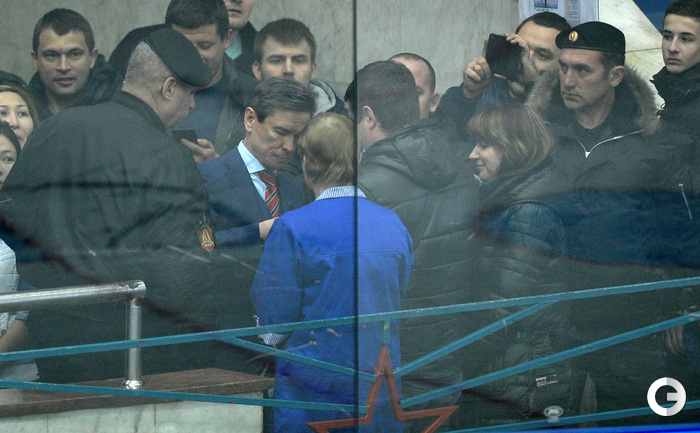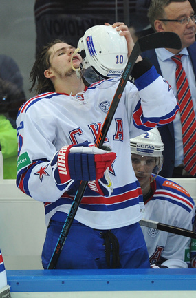 КХЛ. Регулярный чемпионат. ЦСКА – СКА (Санкт-Петербург) – 1:3 (1:1, 0:1, 0:1). Голы: Бурдасов – 8 (Мортенссон), 2:11 – 0:1. Андронов – 5 (Макаров, Муршак), 16:17 – 1:1. Ковальчук – 23 (Тихонов), 36:39 – 1:2. Кетов – 4 (Чудинов, Белов), 41:43 – 1:3. Форвард ЦСКА Александр Радулов из-за травмы наблюдал за матчем с трибуны. Фото - Александр Федоров, "СЭ"