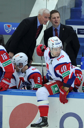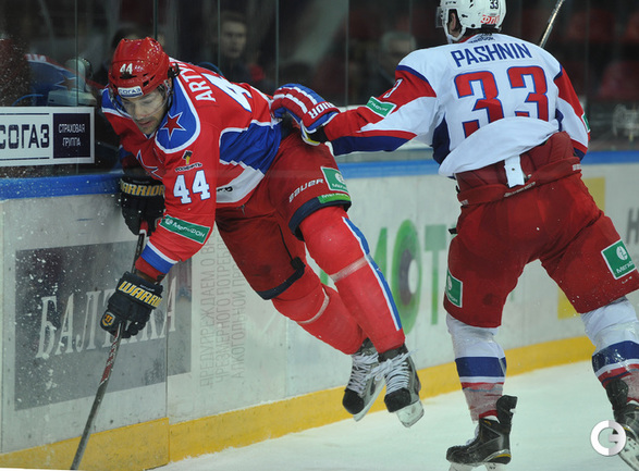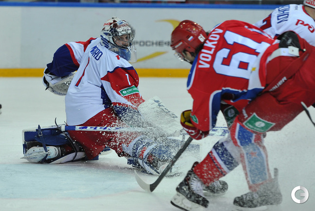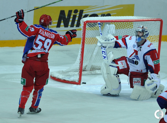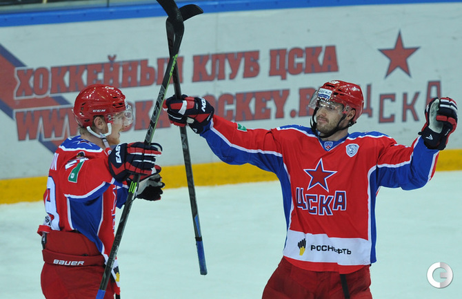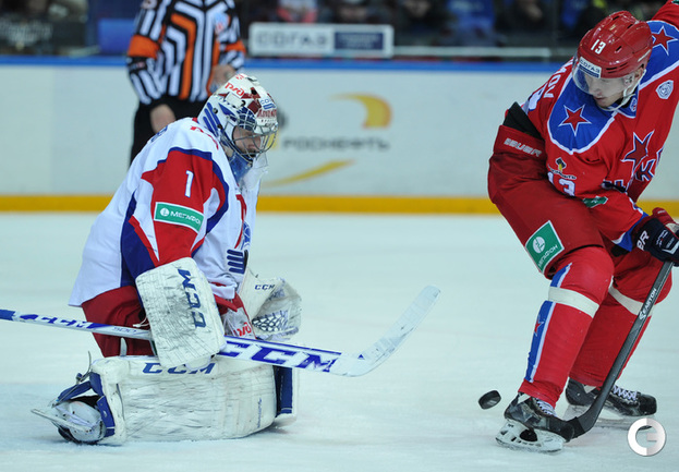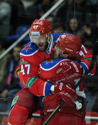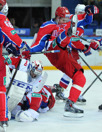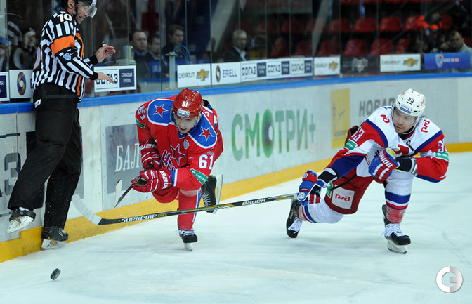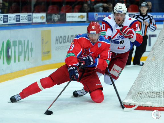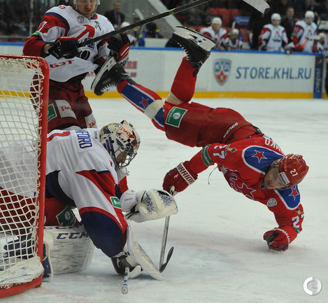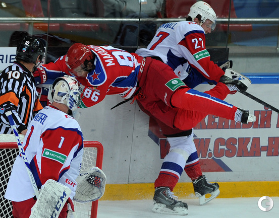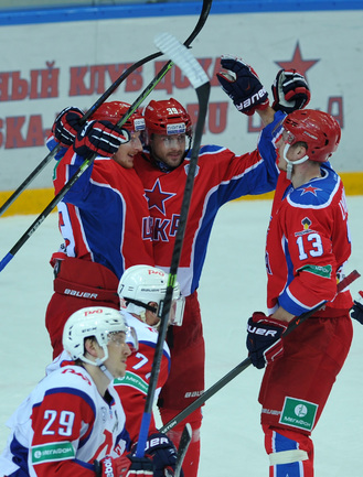 Москва. Хоккей с шайбой. Регулярный чемпионат КХЛ. ЦСКА - "Локомотив" (Ярославль) - 3:2. Голы: Коньков – 12 (Галимов, Пашнин), 9:32 – 0:1. Хьялмарссон – 10 (Муршак), 19:46 – 1:1. Квартальнов – 1 (Артюхин, Науменков), 24:51 – 2:1. Волков – 4 (Радулов, Зайцев), 25:14 – 3:1. Кронвалль – 5 (бол., Плэтт), 53:10 – 3:2. Для армейцев это 4 победа подряд, для ярославцев – третье поражение подряд. Фото - Александр Федоров, "СЭ".