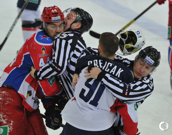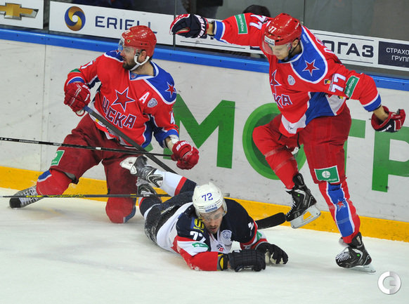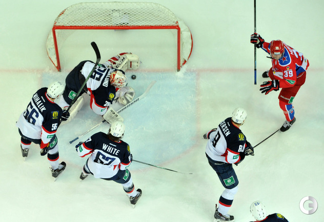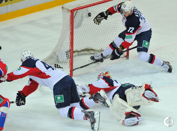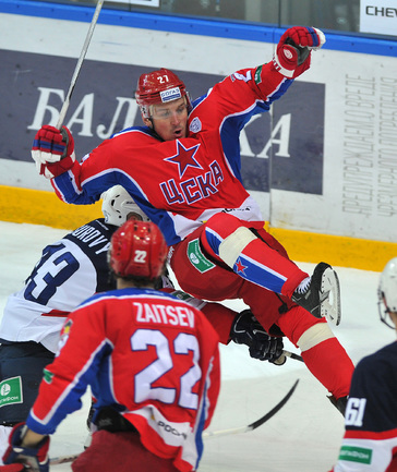 КХЛ. ЦСКА – "Слован" – 12:0 (6:0, 2:0, 4:0). Эта самая крупная победа в истории лиги. Армейцы установили рекорд КХЛ по общему количеству побед – 50 и повторили достижение "Салавата Юлаева" (2008/09 и 2009/10) по набранным очкам – 129. Кроме того, теперь у красно-синих разность шайб превысила "+100" (193:87) – в истории лиги никому не удавалось завершить сезон, взяв этот гроссмейстерский рубеж. Рекордный результат составляет "+99" (215-116) и принадлежит "Салавату"-2009/10. Фото - Александр Федоров, "СЭ"