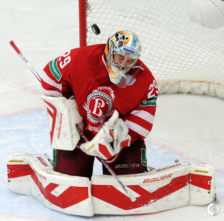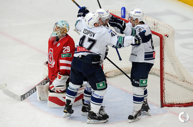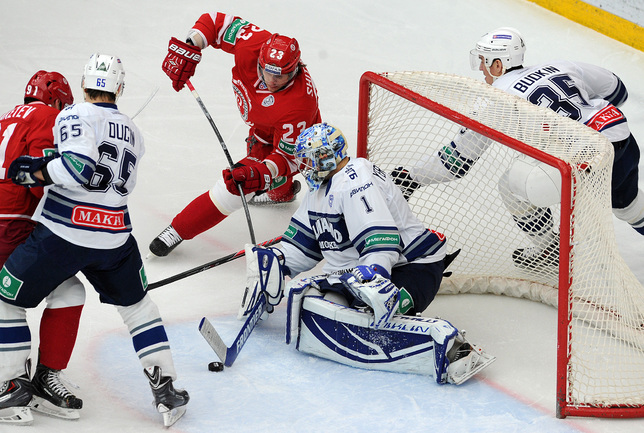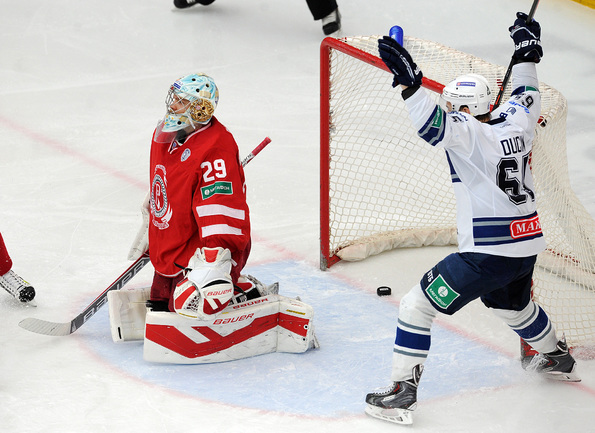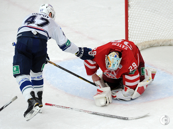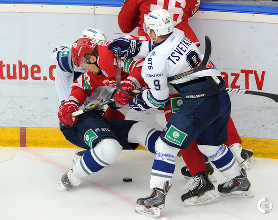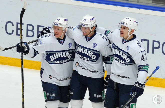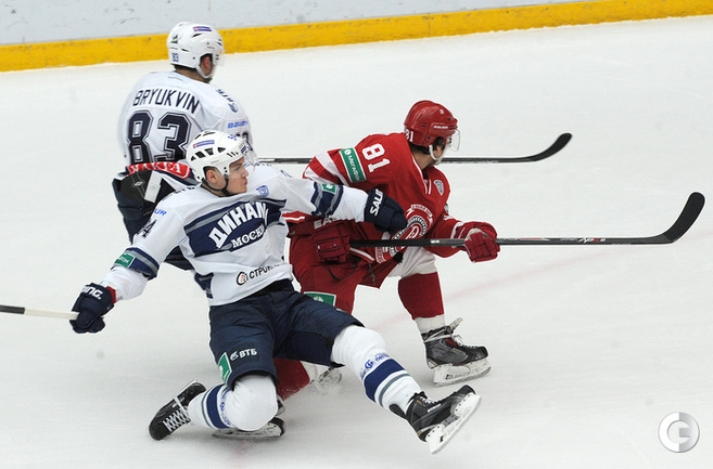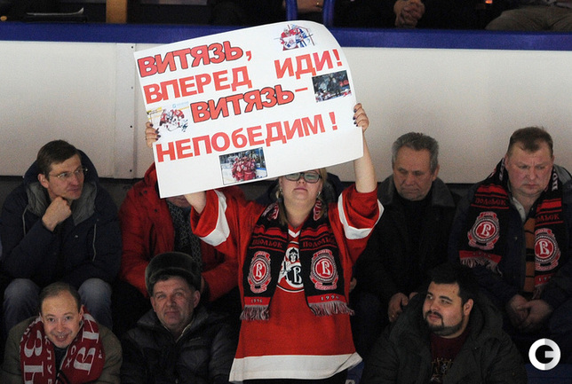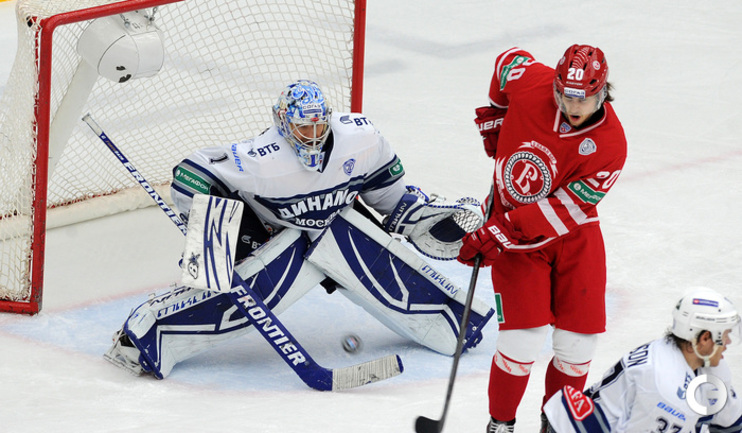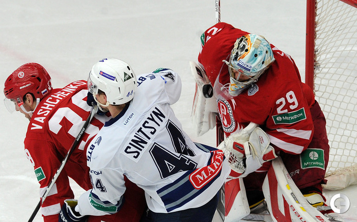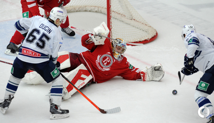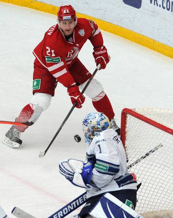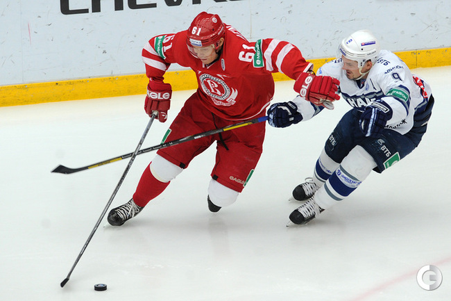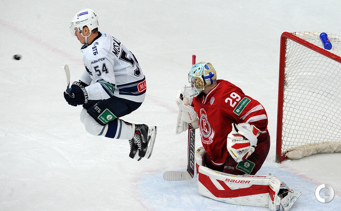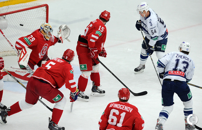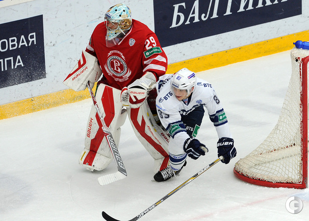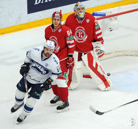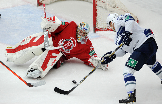 Хоккей. Регулярный чемпионат КХЛ. Подольск. "Витязь" - "Динамо" (Москва) - 3:6 (1:2, 1:3, 1:1). Последнюю шайбу подольского клуба забросил форвард Максим Афиногенов, являющийся воспитанником бело-голубых. Фото - Алексей Иванов, "СЭ"