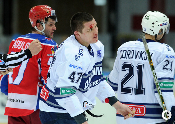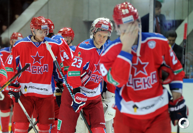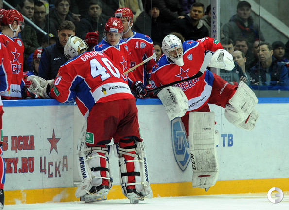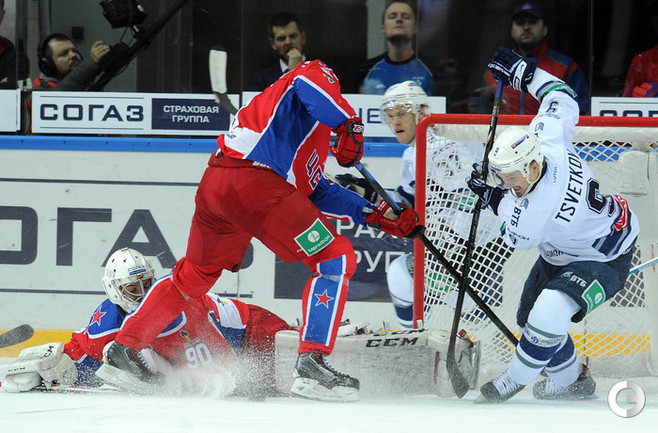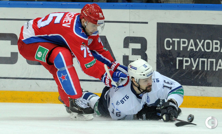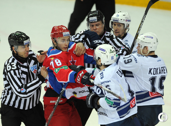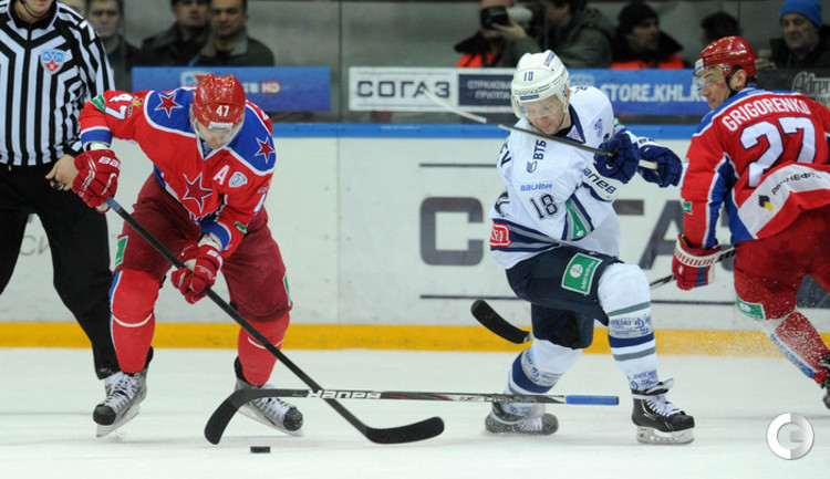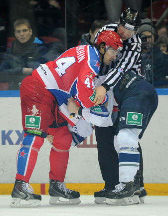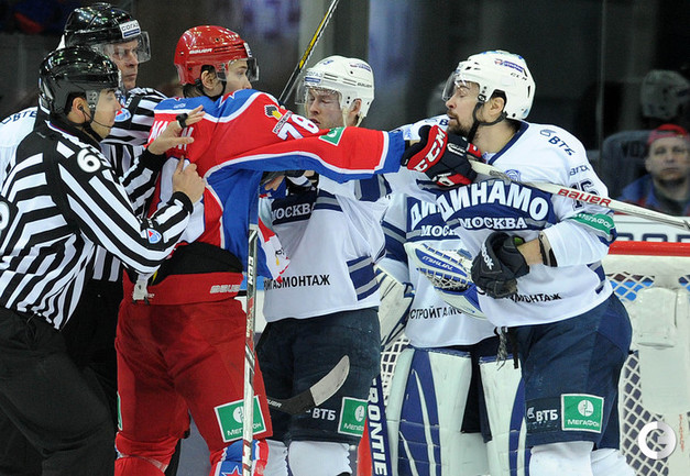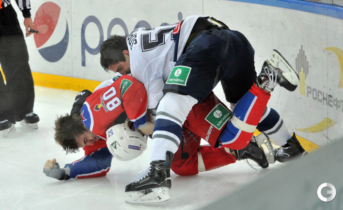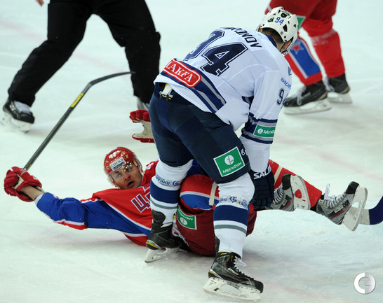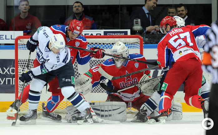 КХЛ. Регулярный чемпионат. ЦСКА – "Динамо" (Москва) – 0:2 (0:0, 0:1, 0:1). ЦСКА на своем льду в матче регулярного чемпионата КХЛ проиграл московскому "Динамо" (0:2). Бело-голубые прервали 7-матчевую победную серию армейцев. Шайбы у "Динамо" забросили нападающие Мартиньш Карсумс и Каспарс Даугавиньш. Отметим, что на двоих команды набрали 62 минуты штрафного времени. Фото - Алексей Иванов, "СЭ", Никита Успенский, "СЭ"