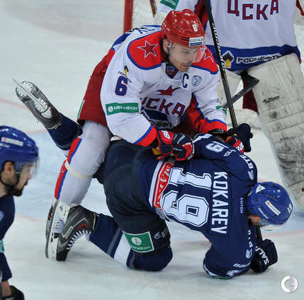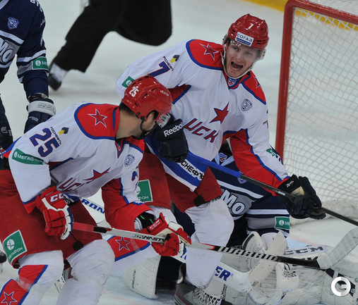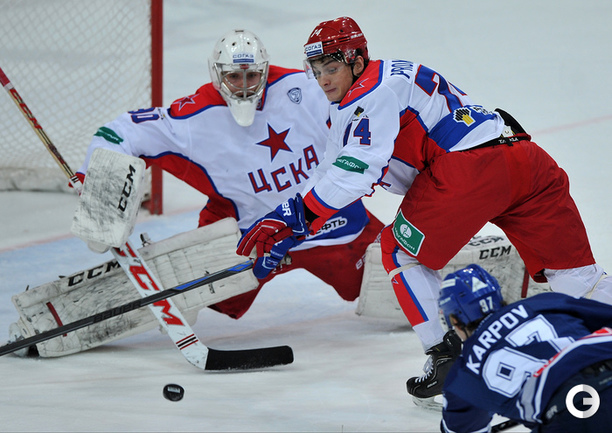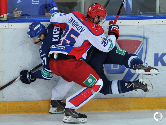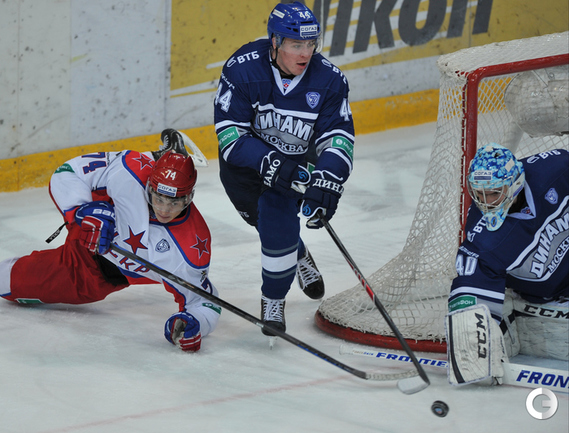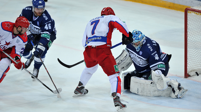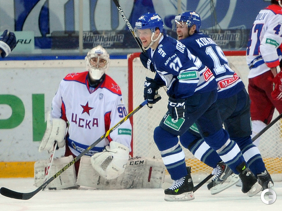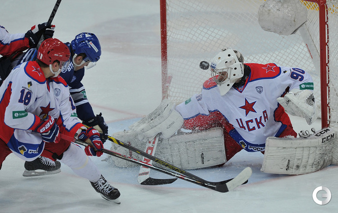 Хоккей. Регулярный чемпионат КХЛ. "Динамо" (Москва) - ЦСКА - 2:1 . Голы: Жарков – 8 (Коротков), 15:09 – 0:1. Цветков – 8, 49:34 – 1:1. Яласваара – 5 (Кокарев, Вишневский), 64:29 – 2:1. Фото - Александр Федоров, "СЭ"
