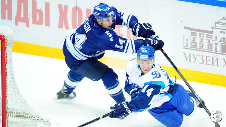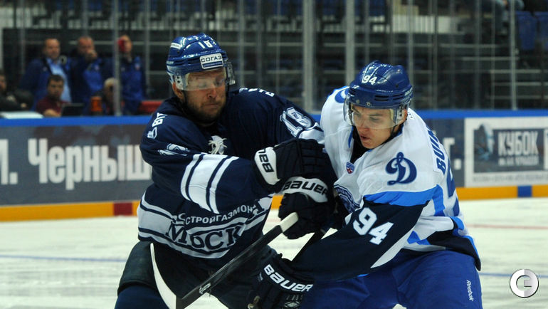 Минское "Динамо" в матче Кубка имени Чернышева обыграло московских одноклубников (3:2 ОТ). В составе москвичей забитыми голами отличились нападающие Каспарс Даугавиньш и Максим Карпов. У минчан шайбы забросили форварды Сергей Дрозд, Дмитрий Мелешко и защитник Лукаш Крайчек. Фото Никита УСПЕНСКИЙ, "СЭ"