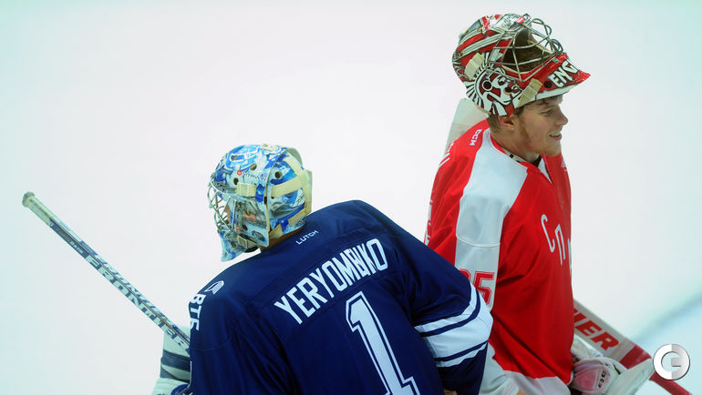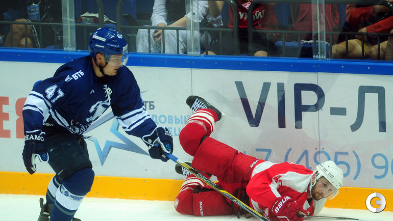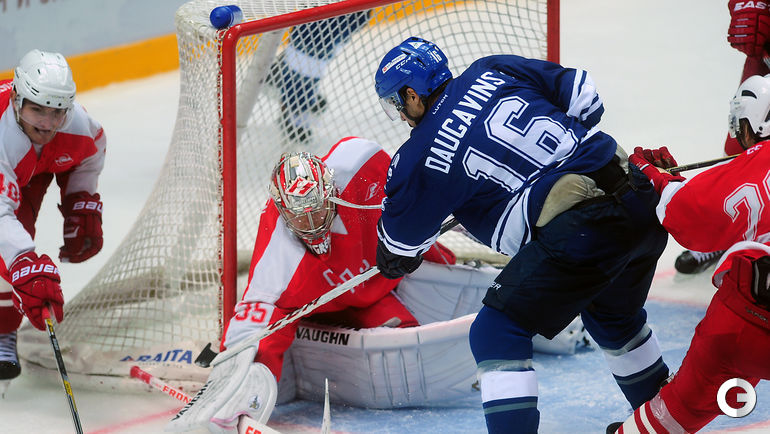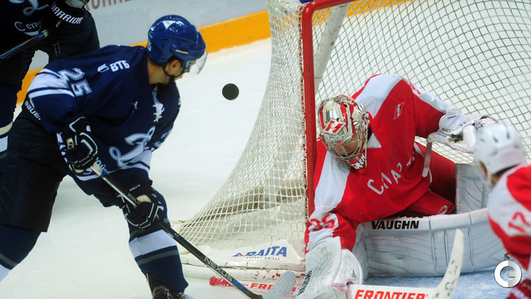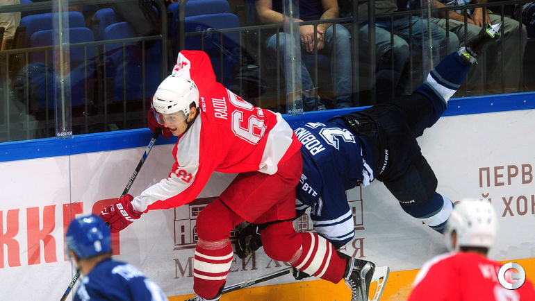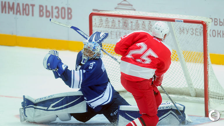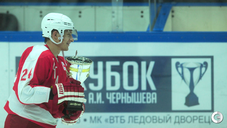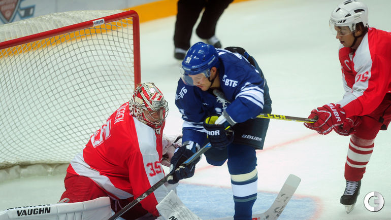 Спартак" в заключительном матче Кубка имени Аркадия Чернышева одолел московское "Динамо", став победителем турнира. Для победы над бело-голубыми красно-белым хватило одной заброшенной шайбы, автором которой стал Дмитрий Коробов. Отметим, что спартаковцы одержали три победы в трех поединках. Второе место занял "Амур", третье - минское "Динамо", а москвичи стали последними. Фото Федор Успенский, "СЭ"