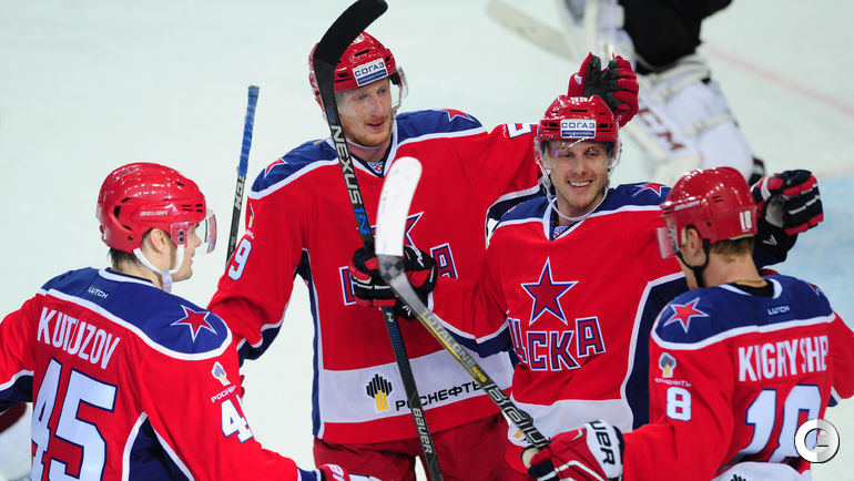 В матче регулярного чемпионата КХЛ ЦСКА на своем льду разгромил рижское "Динамо" со счетом 5:0. Самым результативным игроком встречи стал нападающий Ян Муршак – на его счету 3 (1+2) очка. Отметим, что голкипер красно-стних Станислав Галимов впервые в сезоне смог оставить свои ворота в неприкосновенности. Напомним, что впереди у армейцев еще 6 домашних матчей в регулярном чемпионате КХЛ. Фото Никита Успенский, "СЭ"