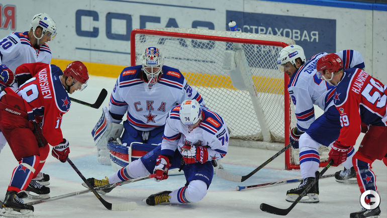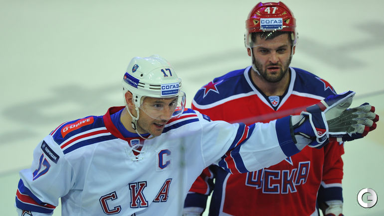 ЦСКА на своем льду в матче регулярного чемпионата КХЛ уступил СКА. Победную шайбу во втором тайме забросил капитан питерской команды форвард Илья Ковальчук. Фото Александра ФЕДОРОВА, "СЭ"