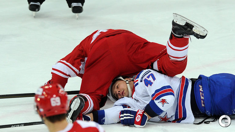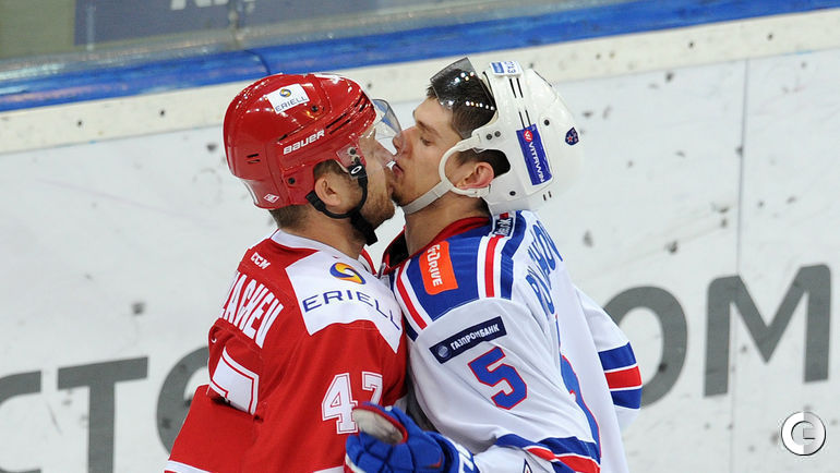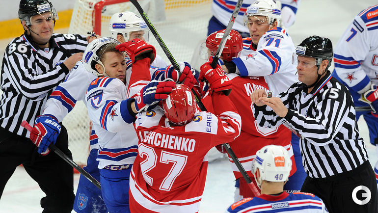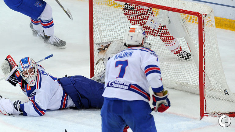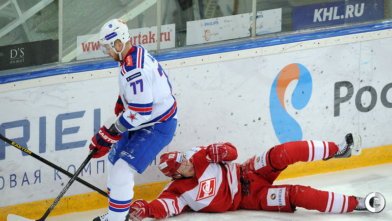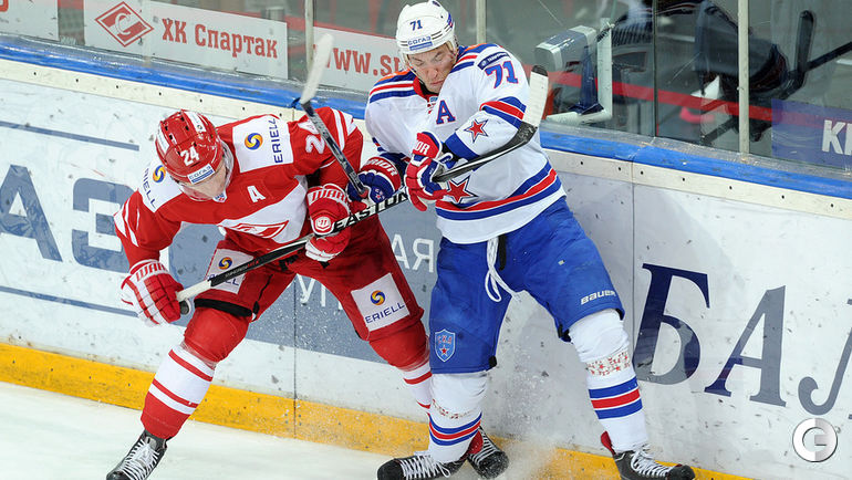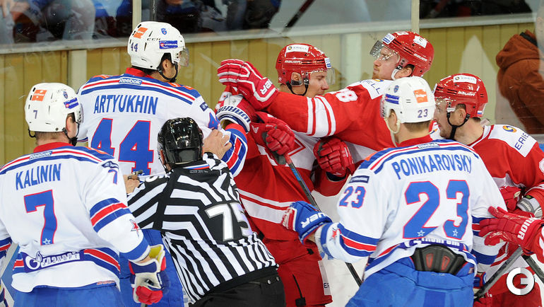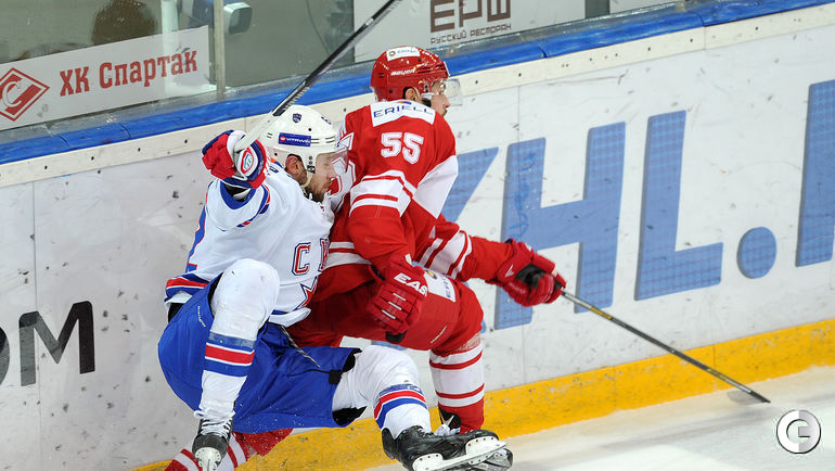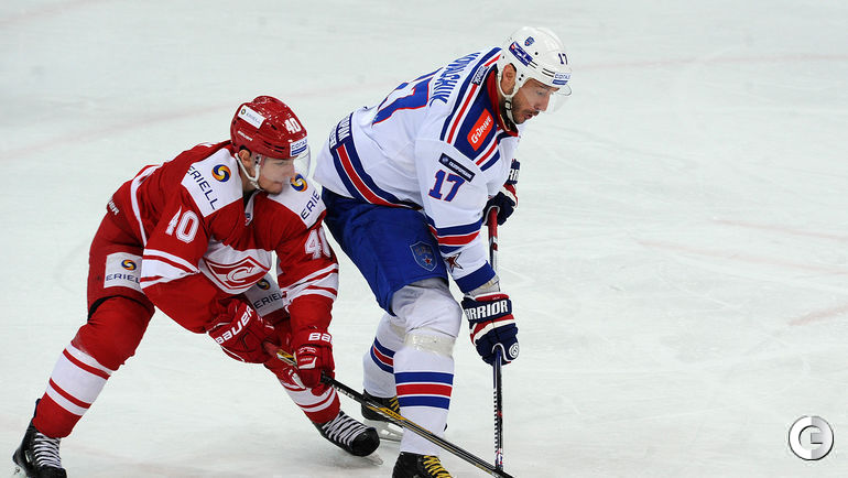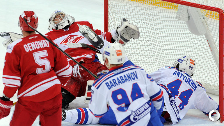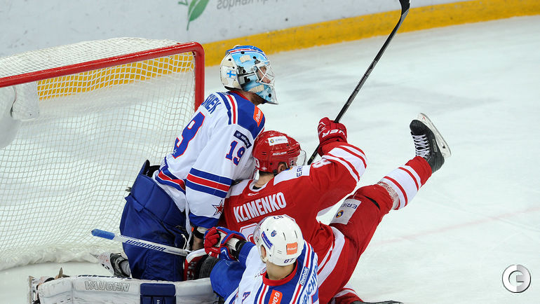 СКА в выездном матче регулярного чемпионата КХЛ обыграл "Спартак" – 3:1. Голы в составе армейцев забили Александр Барабанов, Дмитрий Калинин и Ярно Коскиранта. Единственную шайбу красно-белых забросил защитник Чарльз Геноуэй. Фото Алексей ИВАНОВ, "СЭ"