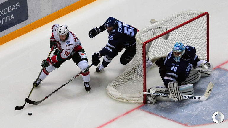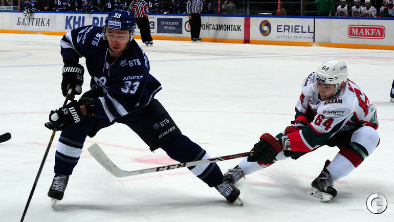 "Ак Барс" взял верх над "Динамо" в гостевом матче регулярного чемпионата КХЛ – 2:0. Голами в составе казанцев отметились Александр Свитов и Маттиас Шегрен. Вместе с тем бело-голубые уступили СКА шестое место на Западе. Фото Никита Успенский, "СЭ"