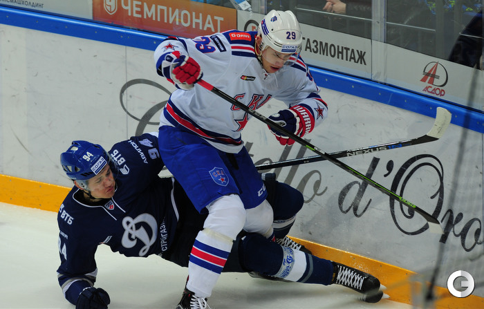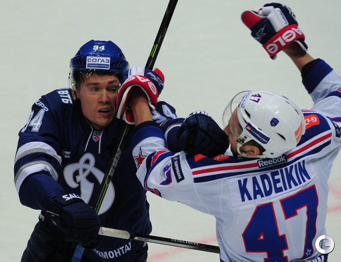 КХЛ. Регулярный чемпионат. "Динамо" (Москва) – СКА (Санкт-Петербург) – 5:1 (1:1, 2:0, 2:0). Голы: Хафизуллин – 1, 1:45 – 0:1. Хиетанен – 7 (бол., Миронов, Пестушко), 15:20 – 1:1. Брюквин – 7 (Терещенко, Кокарев), 24:27 – 2:1. Робинсон – 12 (Осипов), 35:38 – 3:1. Игумнов – 1 (Шипов), 45:03 – 4:1. Робинсон – 13 (Карпов), 50:25 – 5:1. Фото – Александр ФЕДОРОВ, "СЭ"