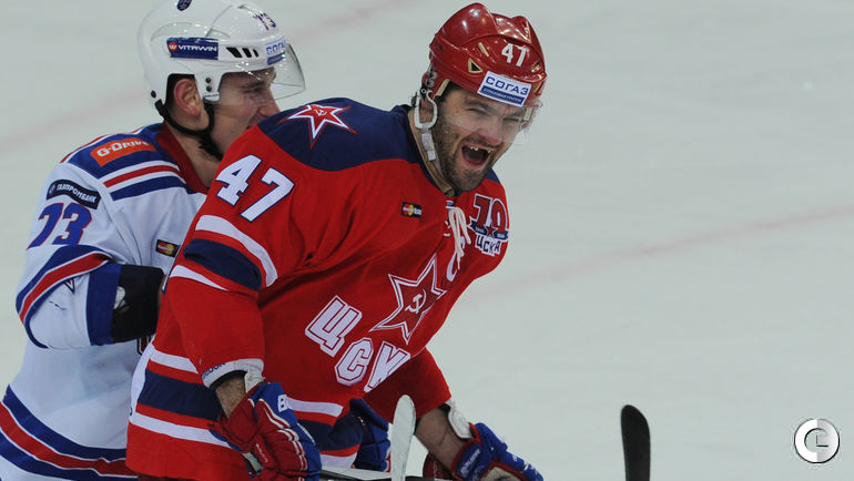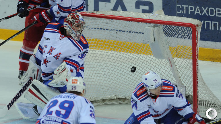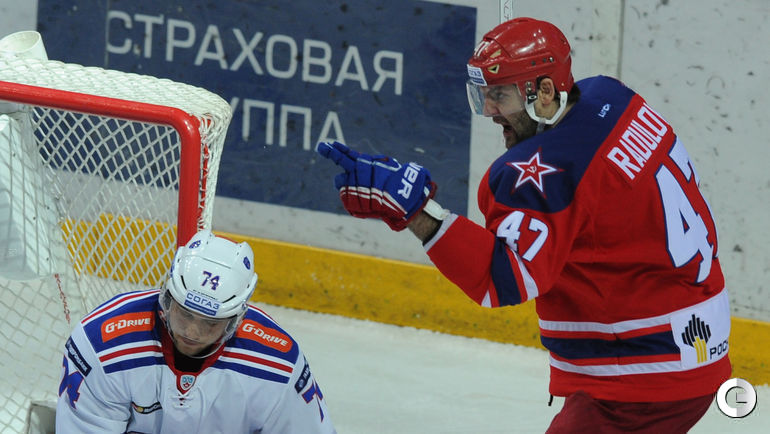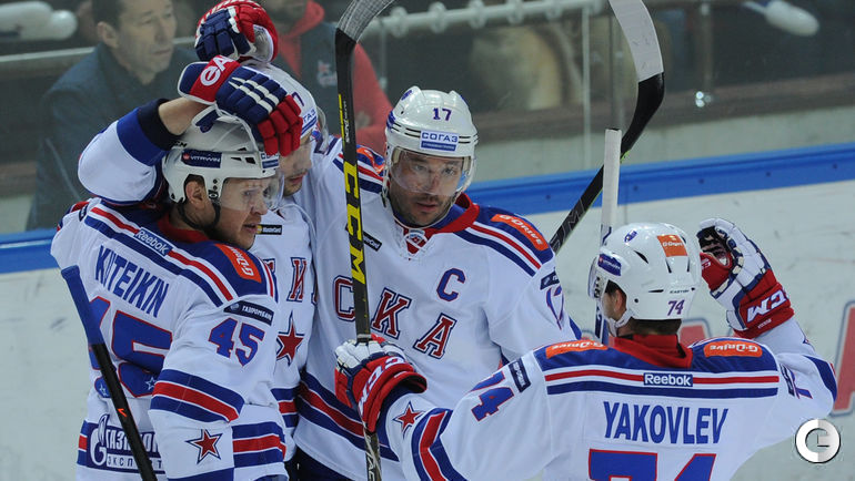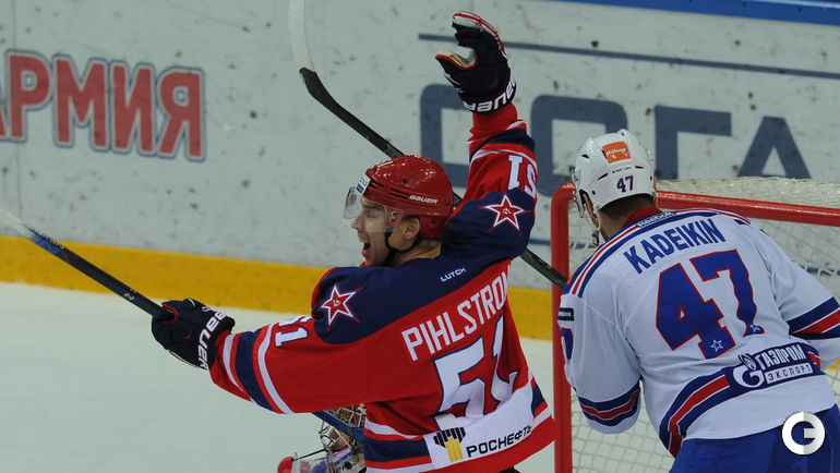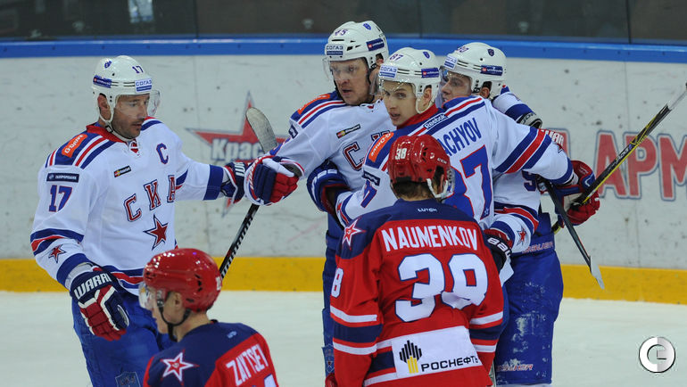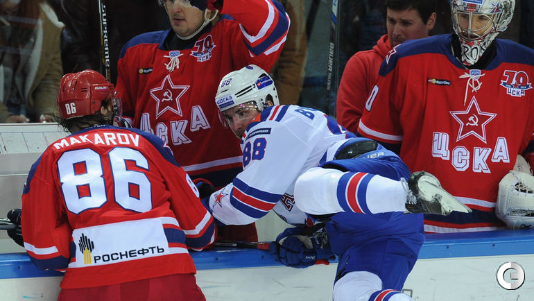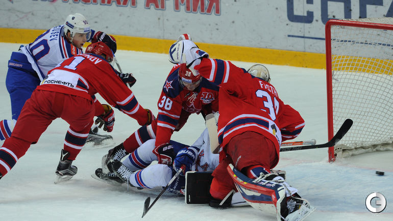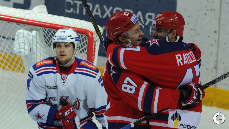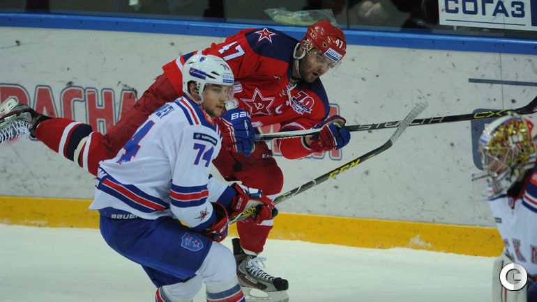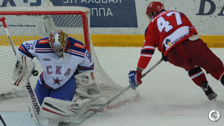 КХЛ. Регулярный чемпионат. ЦСКА - СКА (Санкт-Петербург) - 4:2 (0:2, 2:0, 2:0). Голы: Кадейкин - 4 (Кутейкин, Яковлев), 8:18 - 0:1. Гусев - 16 (бол., Дадонов, Кутейкин), 17:49 - 0:2. Радулов - 19 (Муршак, Светлаков), 21:44 - 1:2. Макаров - 1 (Науменков), 28:52 - 2:2. Киселевич - 4 (Коротков), 40:43 - 3:2. Кугрышев - 14 (Петров, Сергеев), 41:43 - 4:2. Фото Александр ФЕДОРОВ, "СЭ"