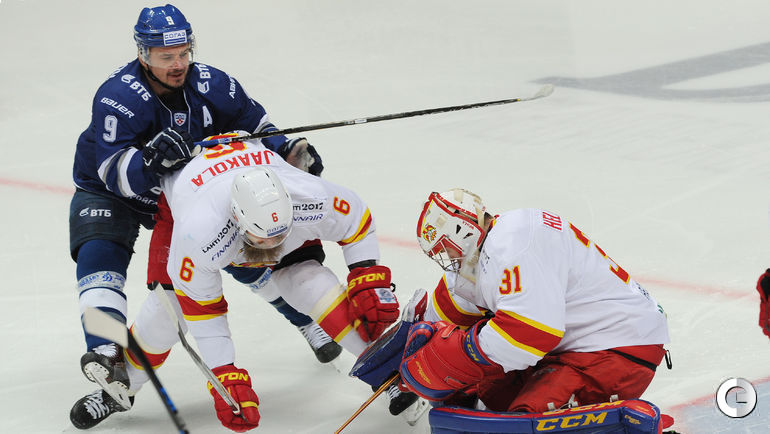 В матче регулярного чемпионата КХЛ московское "Динамо" обыграло "Йокерит" со счетом 5:2. Эта победа для столичной команды стала шестой подряд. Голы: Алексеев – 2 (Шипов, Карпов), 6:09 – 1:0. Федоров – 6 (бол., Галимов, Цветков), 14:07 – 2:0. Брюквин – 8 (Соловьев, Миронов), 26:44 – 3:0. Вишневский – 8 (бол., Робинсон, Цветков), 34:33 – 4:0. Пеллетье – 2 (бол., Йоэнсуу, Козун), 35:16 – 4:1. Аалтонен – 14 (бол., Капанен), 38:50 – 4:2. Терещенко – 9 (Брюквин, Пестушко), 54:24 – 5:2. Фото Александр ФЕДОРОВ, "СЭ"