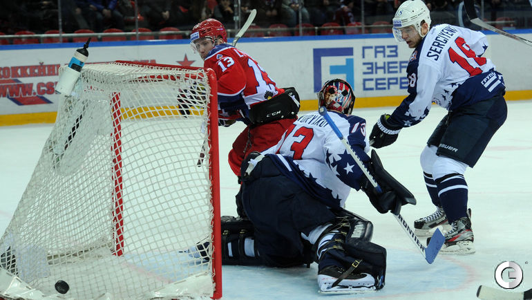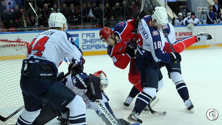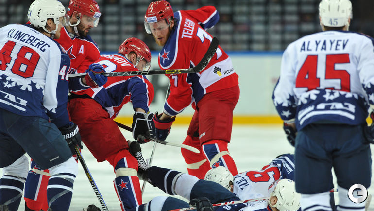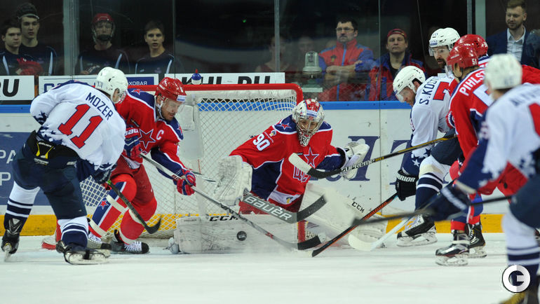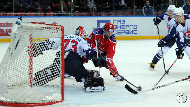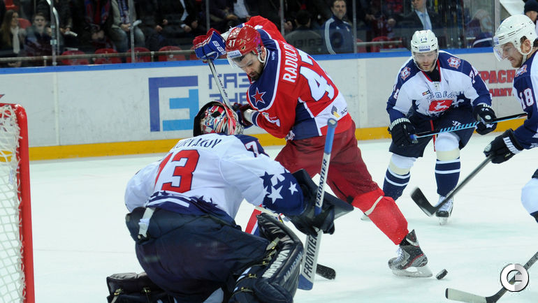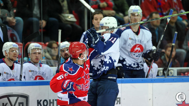 ЦСКА выиграл второй матч серии 1/4 финала Кубка Гагарина с "Торпедо" с убедительным счетом 5:1. Три из своих пяти шайб армейцы забросили в большинстве. Дублем в составе хозяев отметился Джефф Плэтт. К тому же, на его счету одна результативная передача. Третий матч состоится 11 марта в Нижнем Новгороде. Фото Алексей ИВАНОВ, "СЭ"