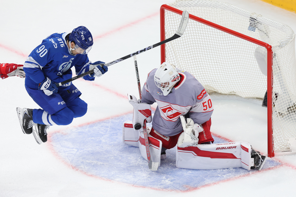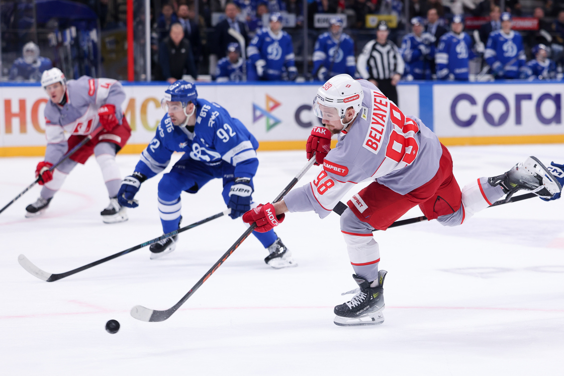«Спартак» в гостях взял реванш у московского «Динамо» за поражение на домашней арене в октябре и одержал победу в новом дерби в регулярном чемпионате КХЛ — 4:2.