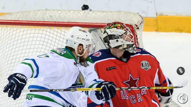 ЦСКА в домашнем матче регулярного чемпионата КХЛ обыграл "Салават Юлаев" (3:0). В составе армейцев 3 (2+1) очка набрал 21-летний нападающий Андрей Кузьменко. Для уфимцев это поражение стало третьим подряд и пятым в шести последних встречах. "СЭ" собрал самые яркие кадры этой игры.