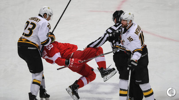 "Северсталь" в матче регулярного чемпионата КХЛ в овертайме победила "Спартак". Дубль, в том числе победная шайба, на счету Юрия Трубачева. У красно-белых хет-три оформил Александр Хохлачев. Команды сравнялись по очкам в турнирной таблице. Однако "Спартак" находится выше по дополнительным показателям (а также имея матч в запасе) и занимает восьмое место, которое дает право на выход в плей-офф.