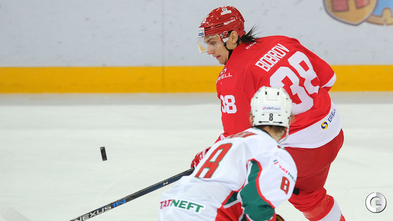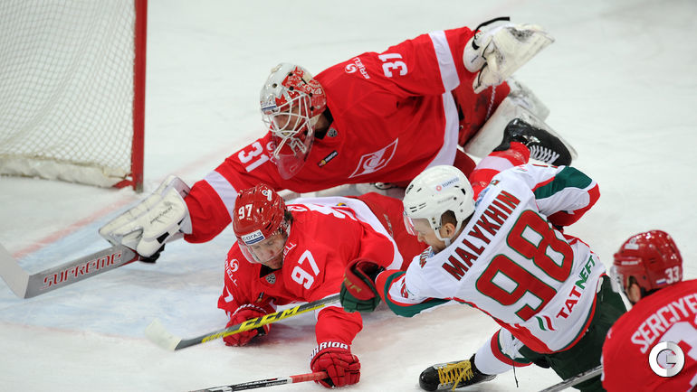 "Спартак" в домашнем матче регулярного чемпионата КХЛ обыгрла "Ак Барс". Единственную шайбу в этой встрече забросил Райан Стоа. Матч посетил гроссмейстер Сергей КАРЯКИН. Вчера шахматист увидел победу футбольного "Спартака" над "Рубином"
