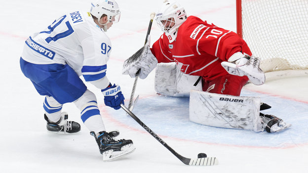 «Спартак» победил московское «Динамо» в четвертый раз в сезоне и во второй за неделю. Теперь красно-белые взяли верх в матче регулярного чемпионата КХЛ на своей площадке по буллитам — 4:3.