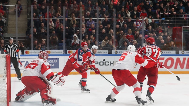 «Спартак» в овертайме победил ЦСКА в матче регулярного чемпионата КХЛ — 3:2. В составе красно-белых дубль оформил Илья Зубов, еще одну шайбу забросил Михаил Юньков. За армейцев отличились Алексей Марченко и Александр Попов. Красно-белые не побеждали армейцев в КХЛ 15 матчей.